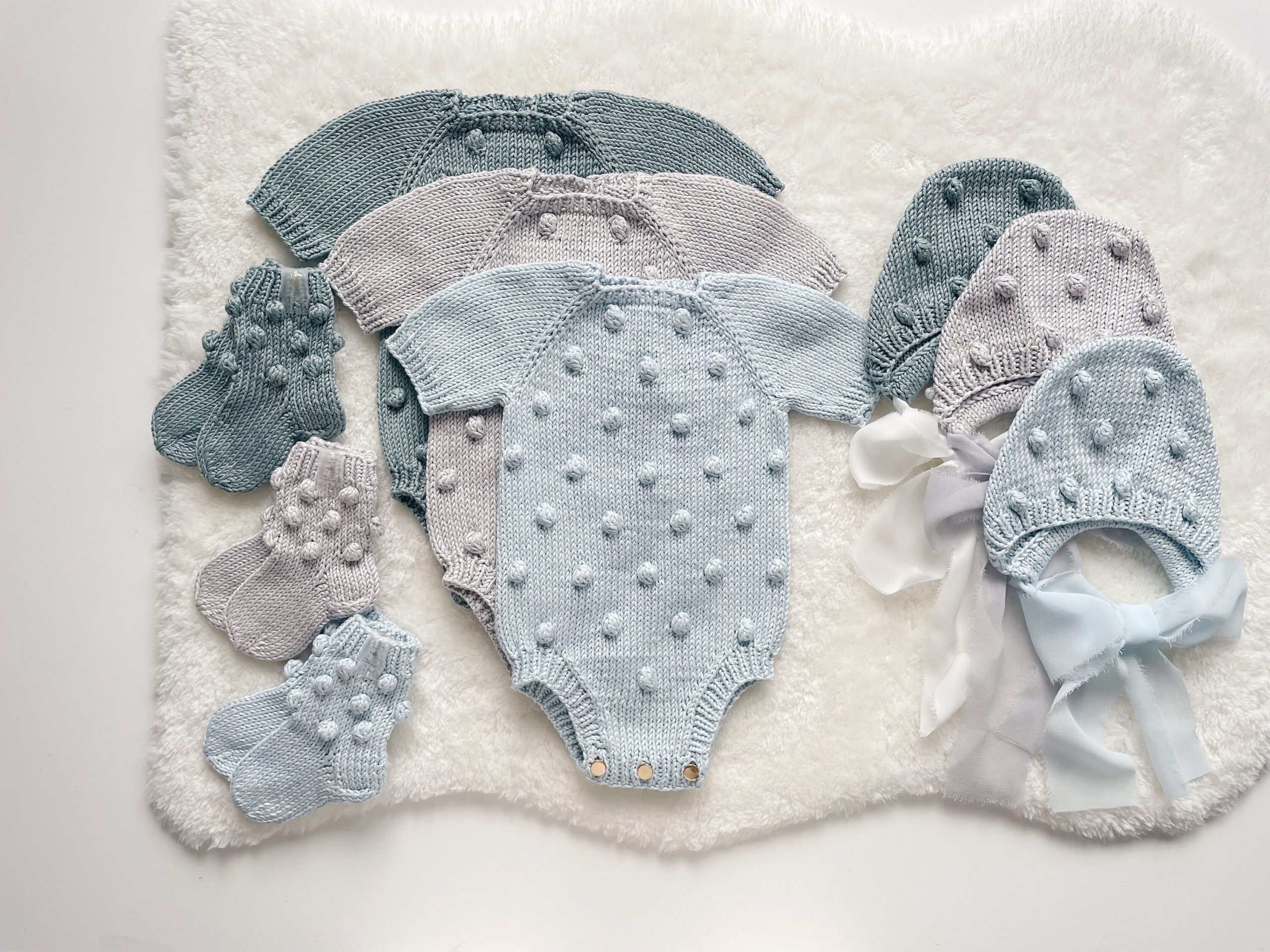 Merino Wool Baby Romper Set – Pink Popcorn Knit Outfit