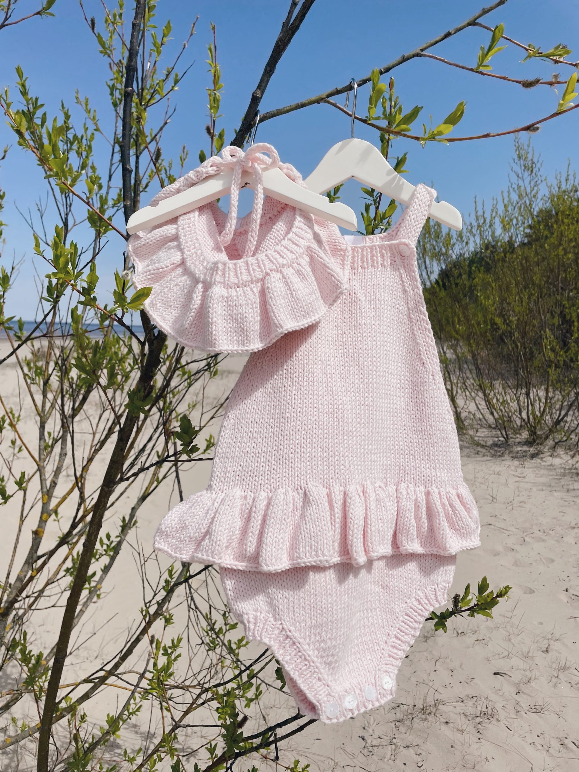 Cotton Baby Romper Set – Pale Pink Ruffle Outfit with Bonnet