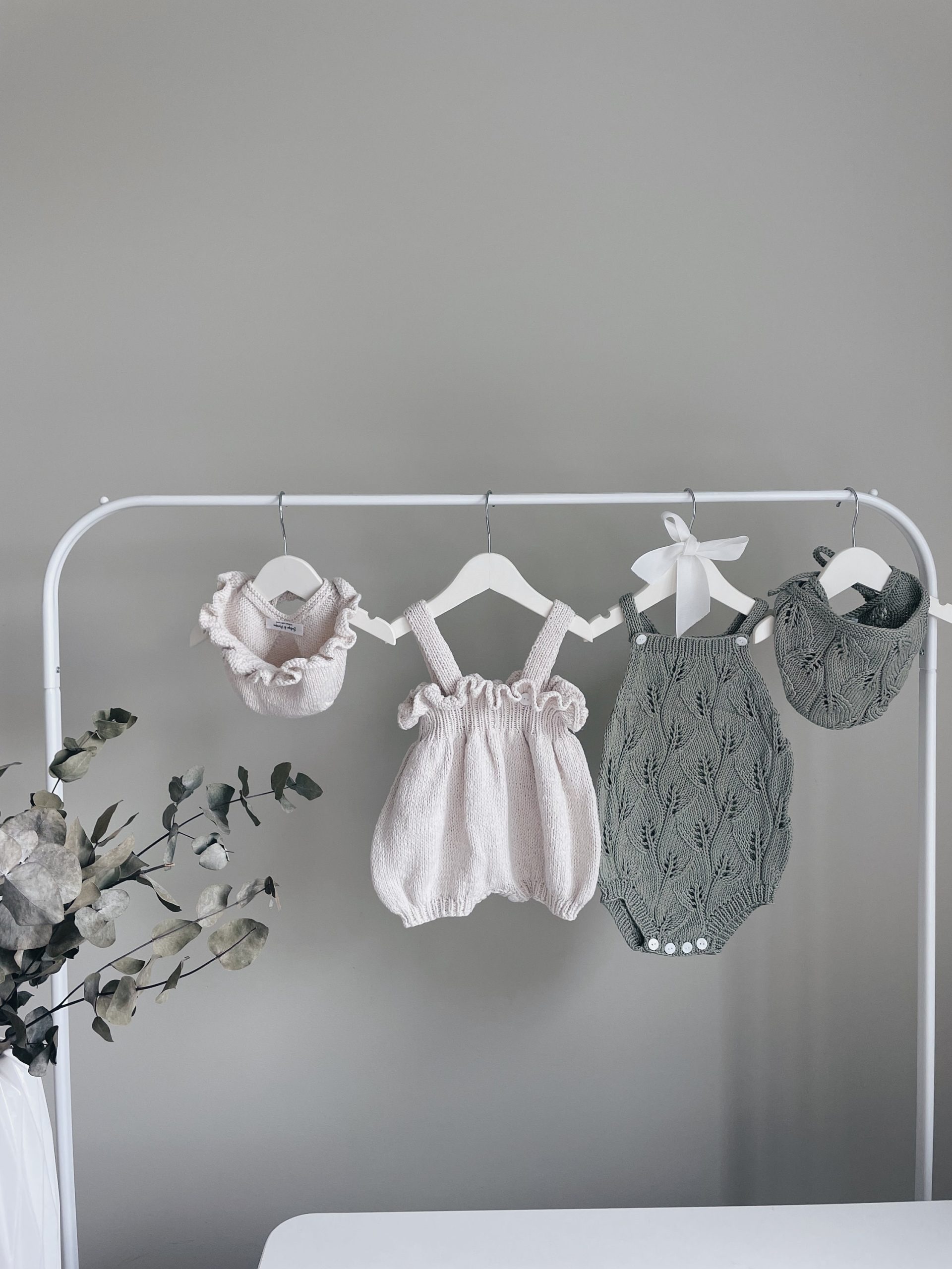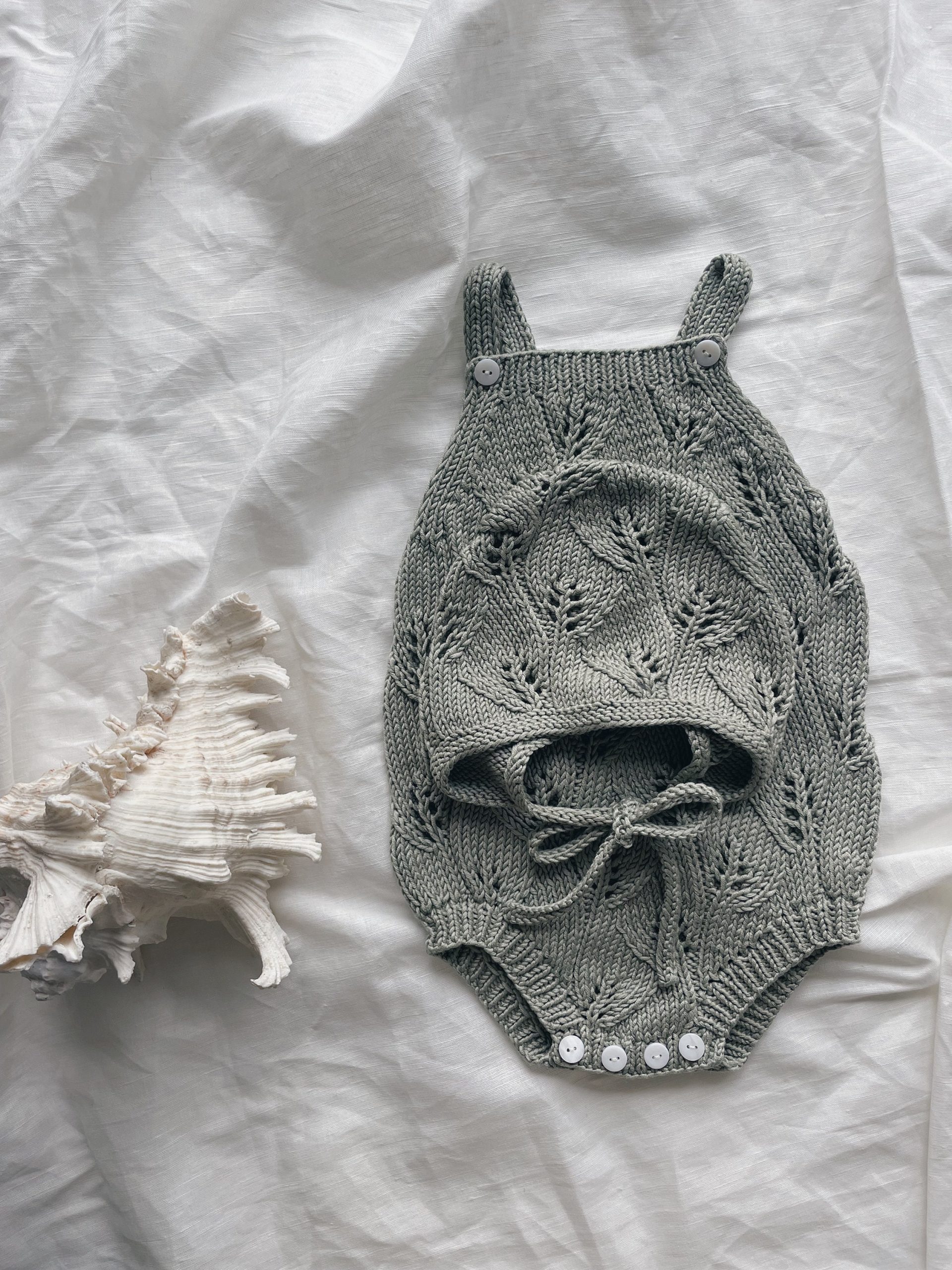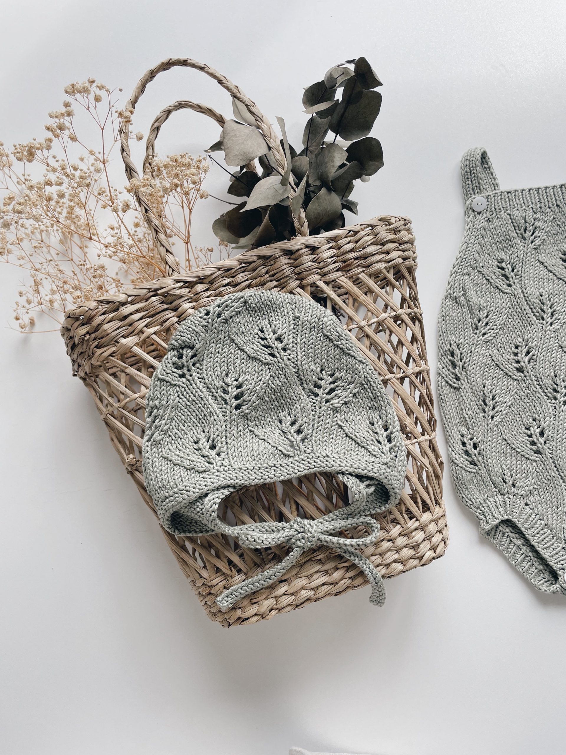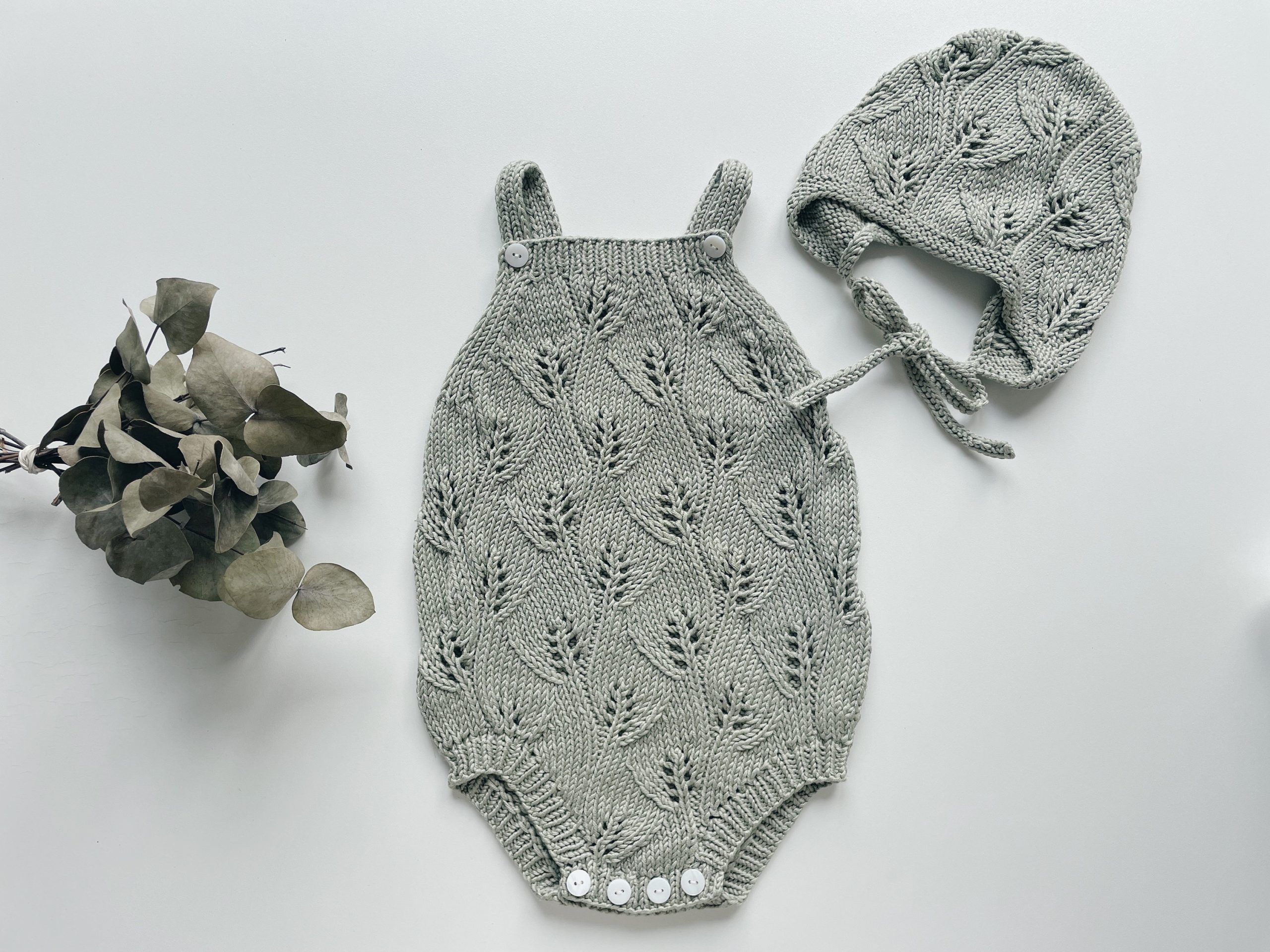 Embroidered Merino Baby Romper and Bonnet Set – Knitted Photo Prop