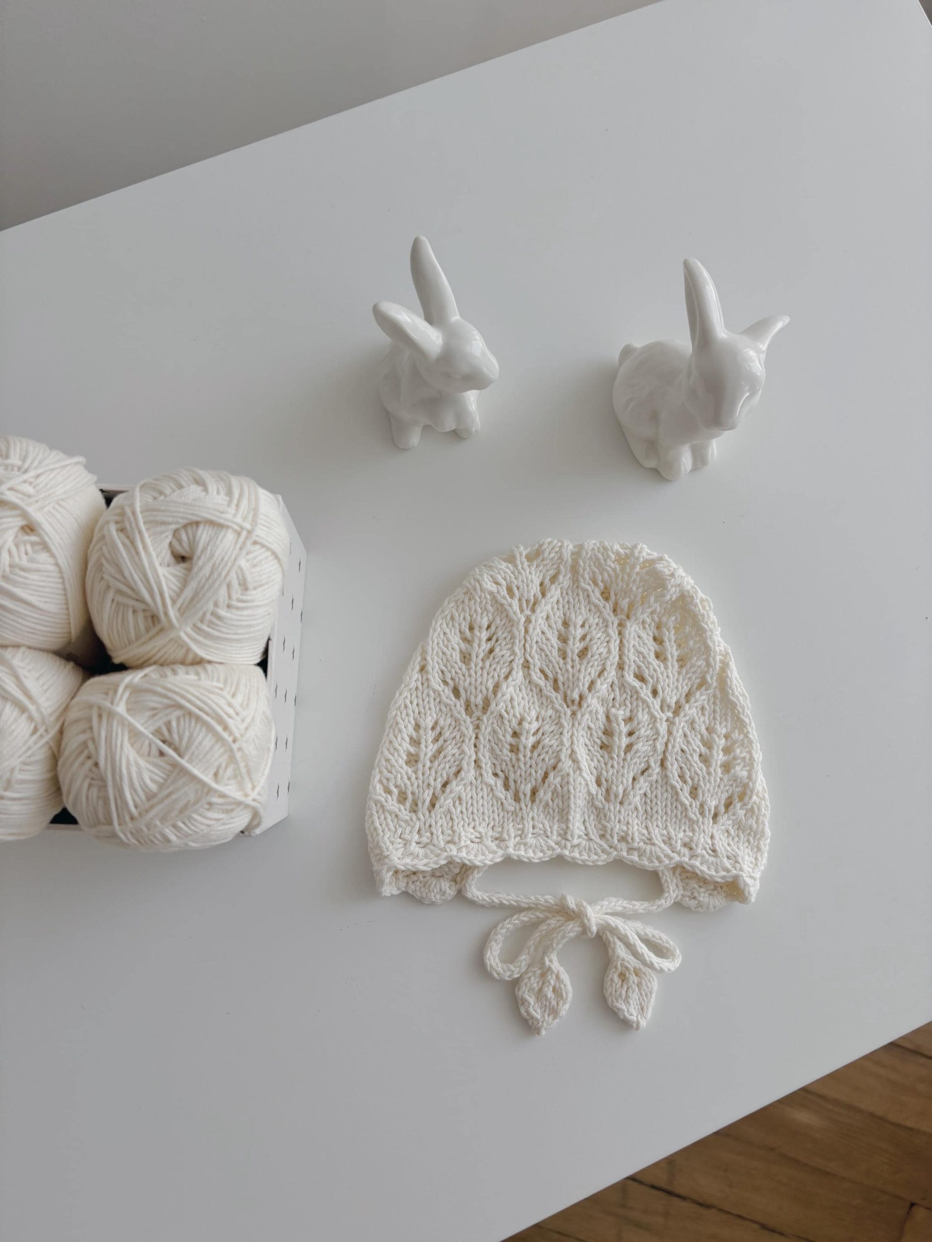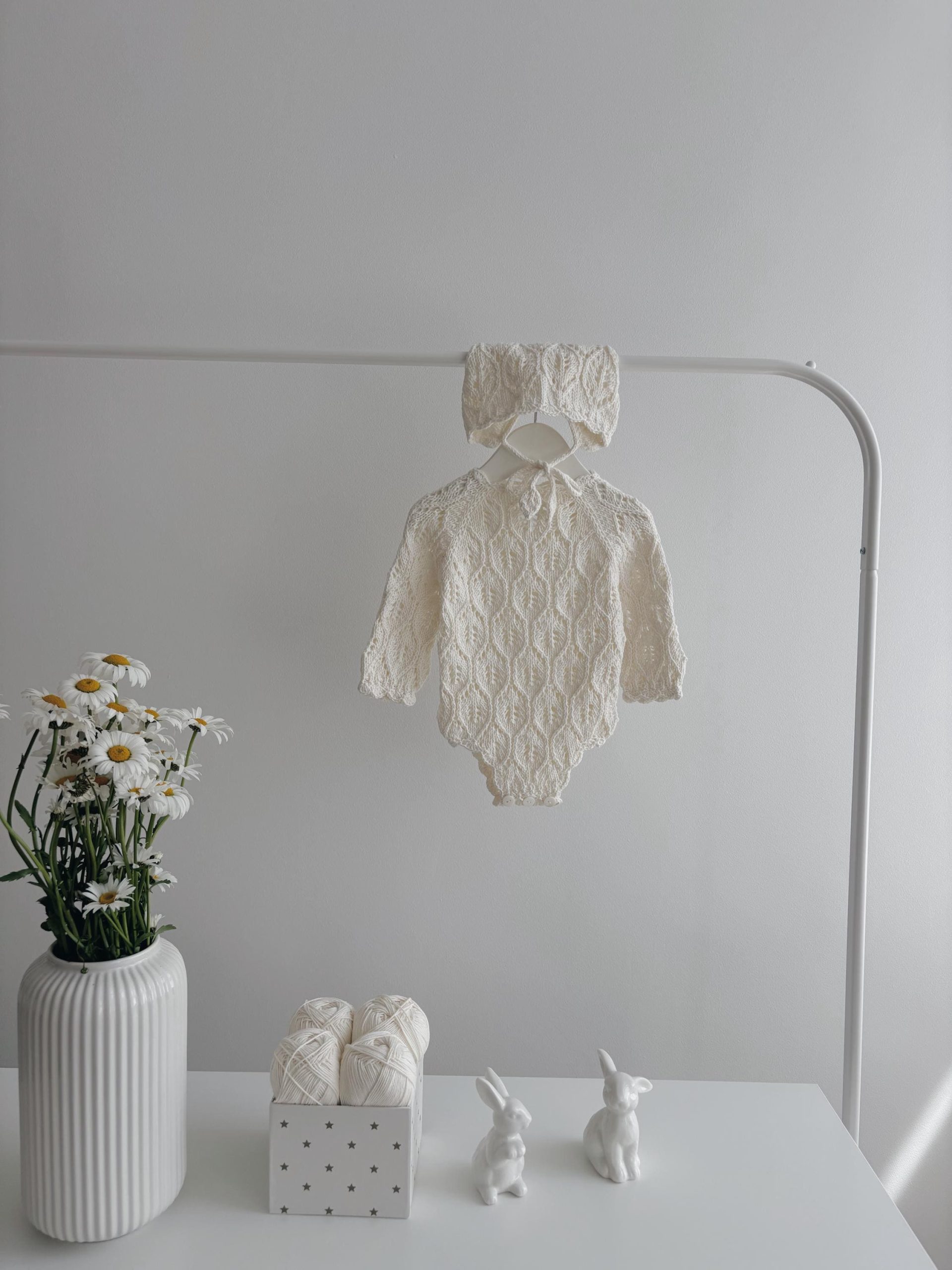 Cotton Knit Baby Romper Set – Cream Bonnet