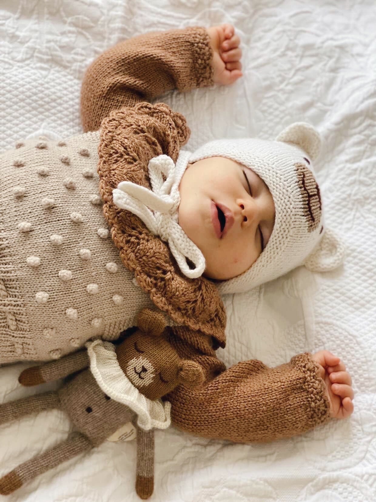 Cotton Knit Baby Romper Set – Cream Bonnet