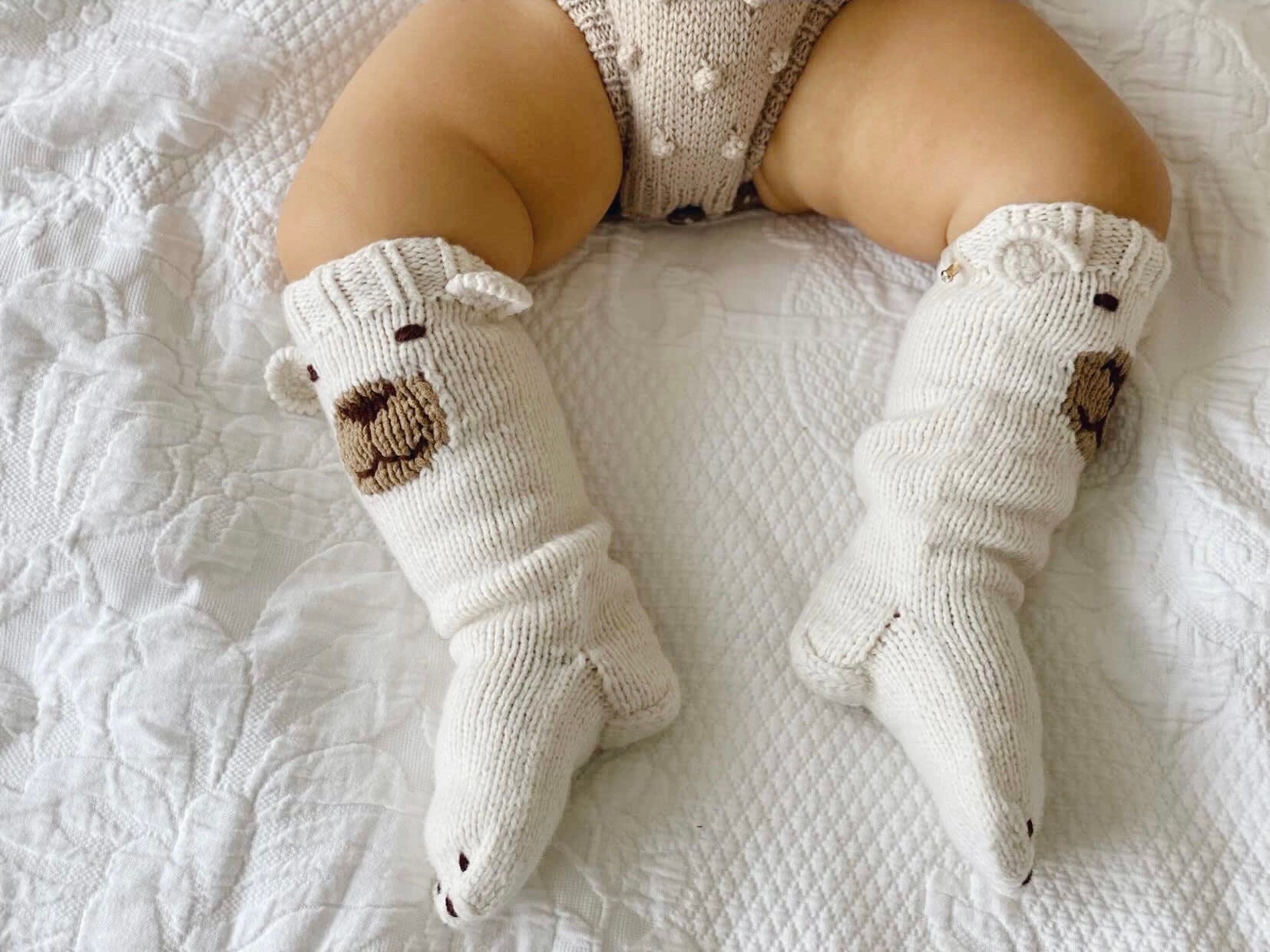 Baby girl or baby boy knitted bear sock and bear bonnet!