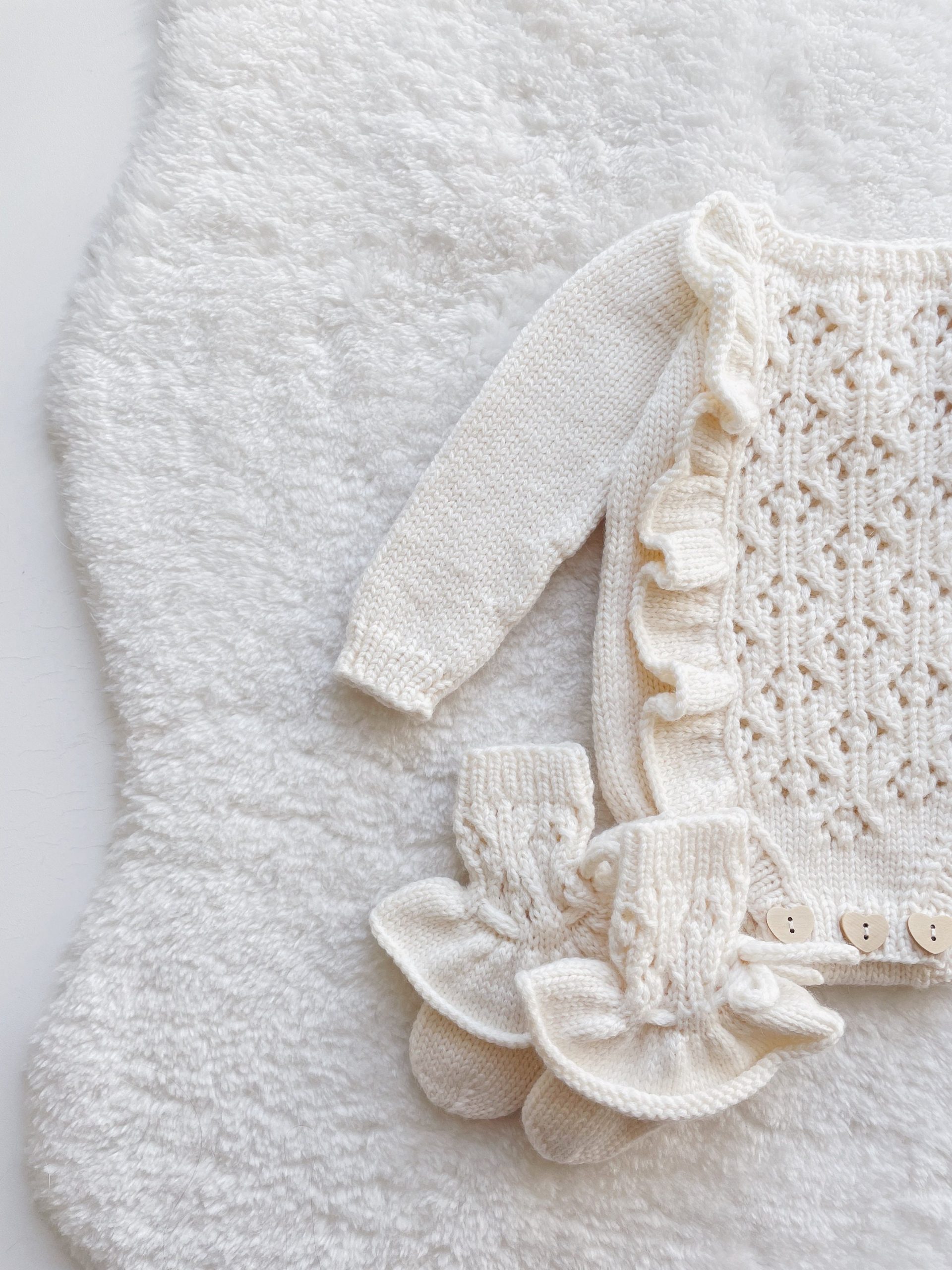 Cream Merino Baby Romper Set, Bonnet & Socks
