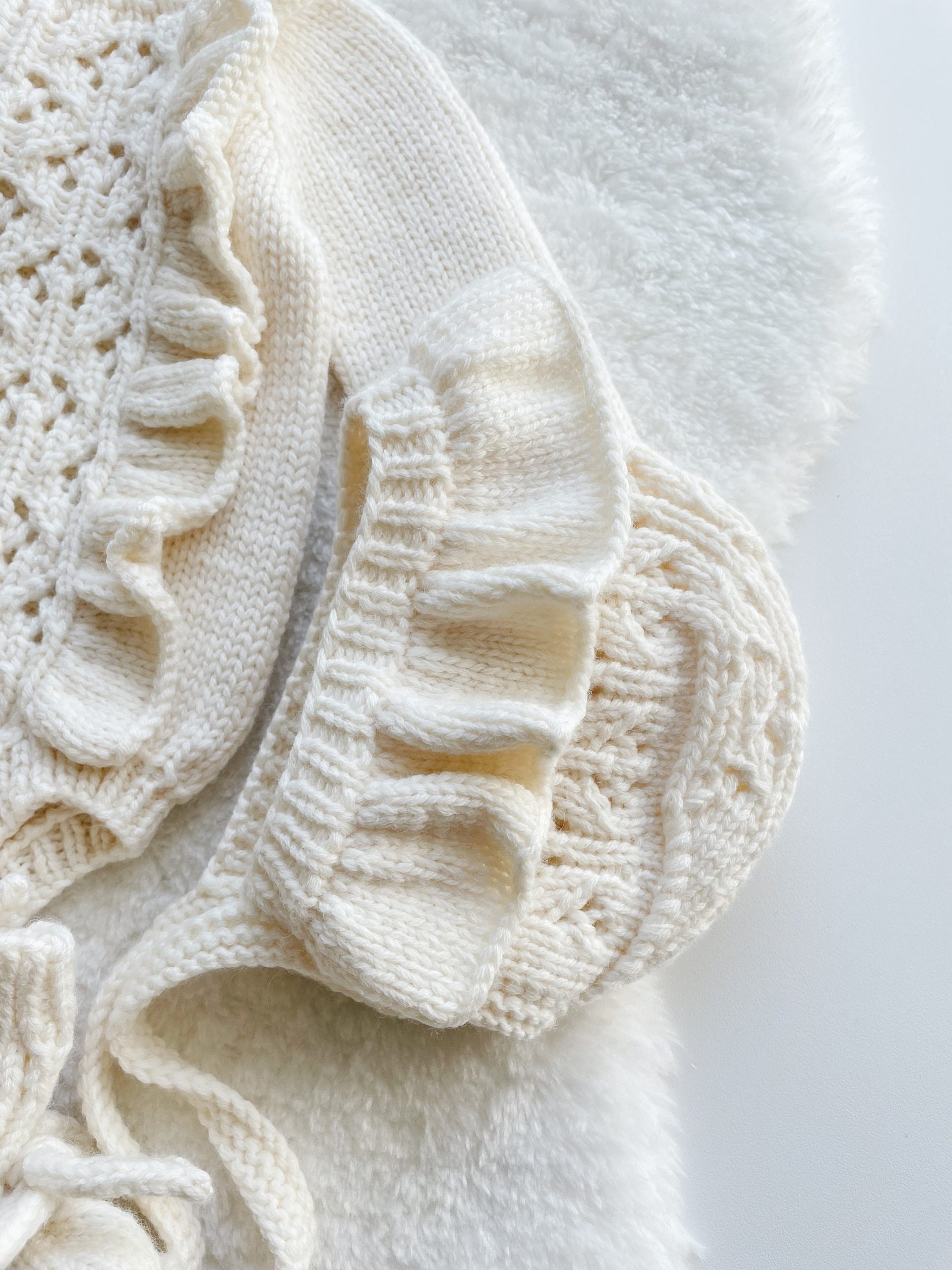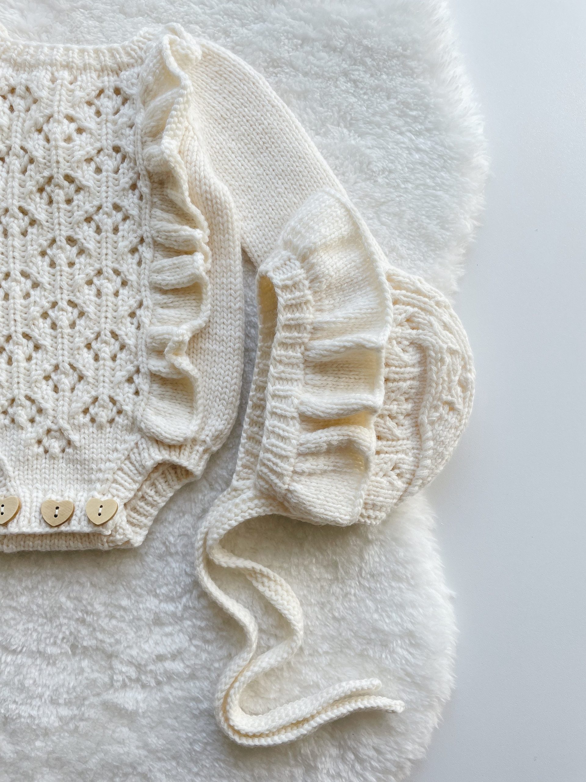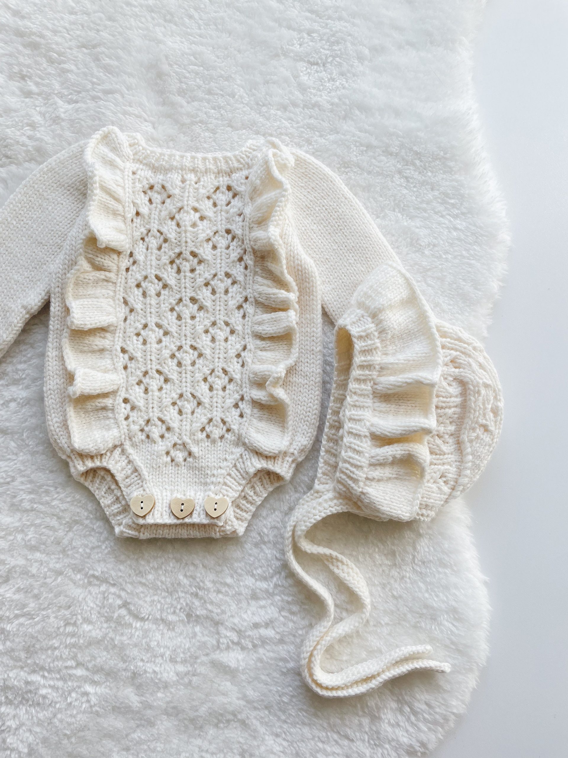 Knit Baby Alpaca Romper and Bonnet Set – Cream Photo Prop