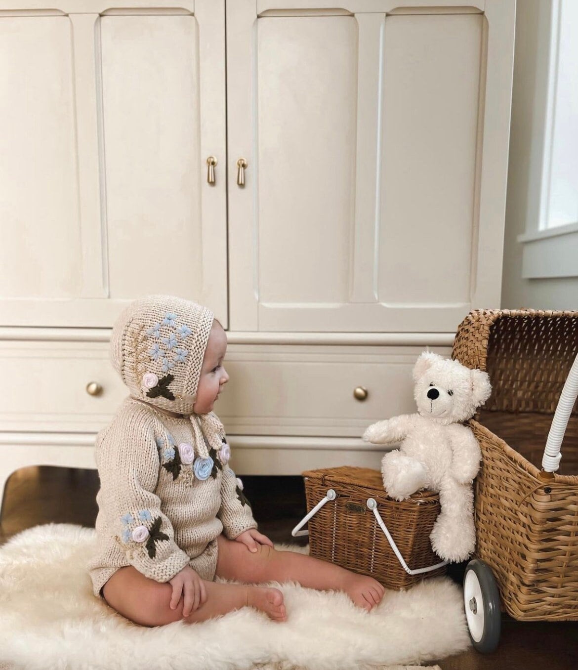 Knit Baby Alpaca Romper and Bonnet Set – Cream Photo Prop