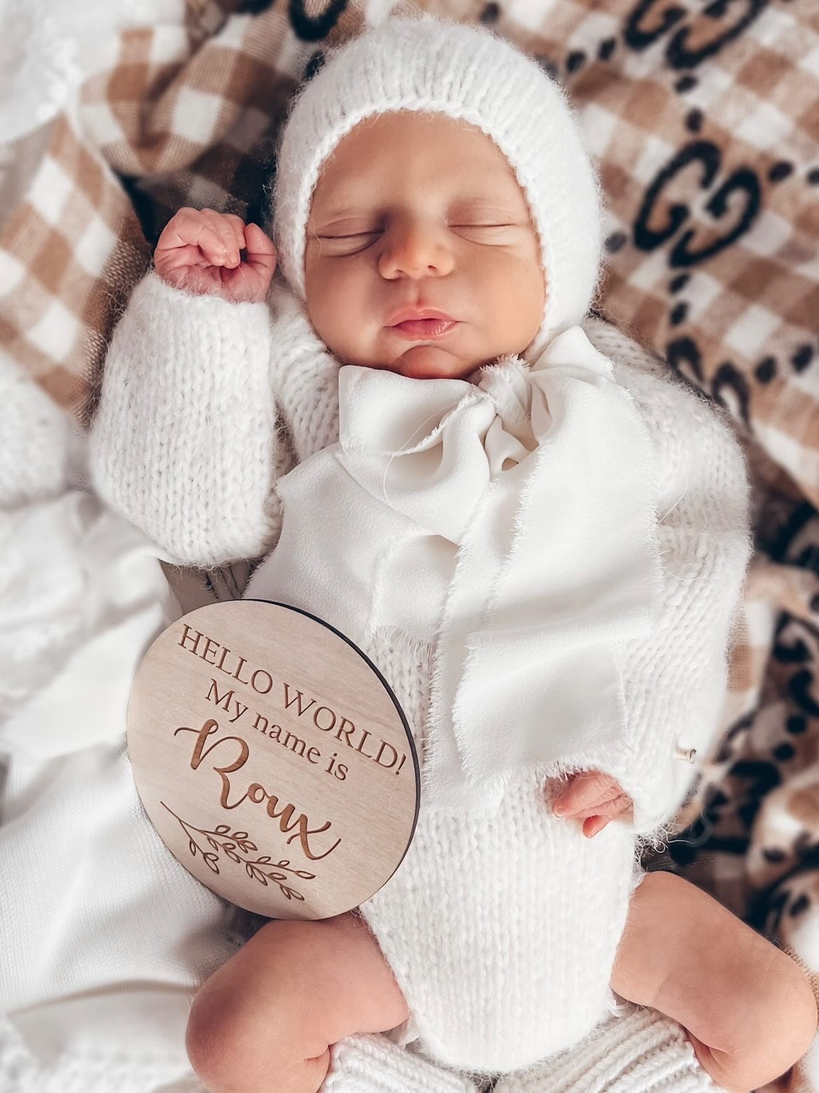 Embroidered Merino Baby Romper and Bonnet Set – Knitted Photo Prop