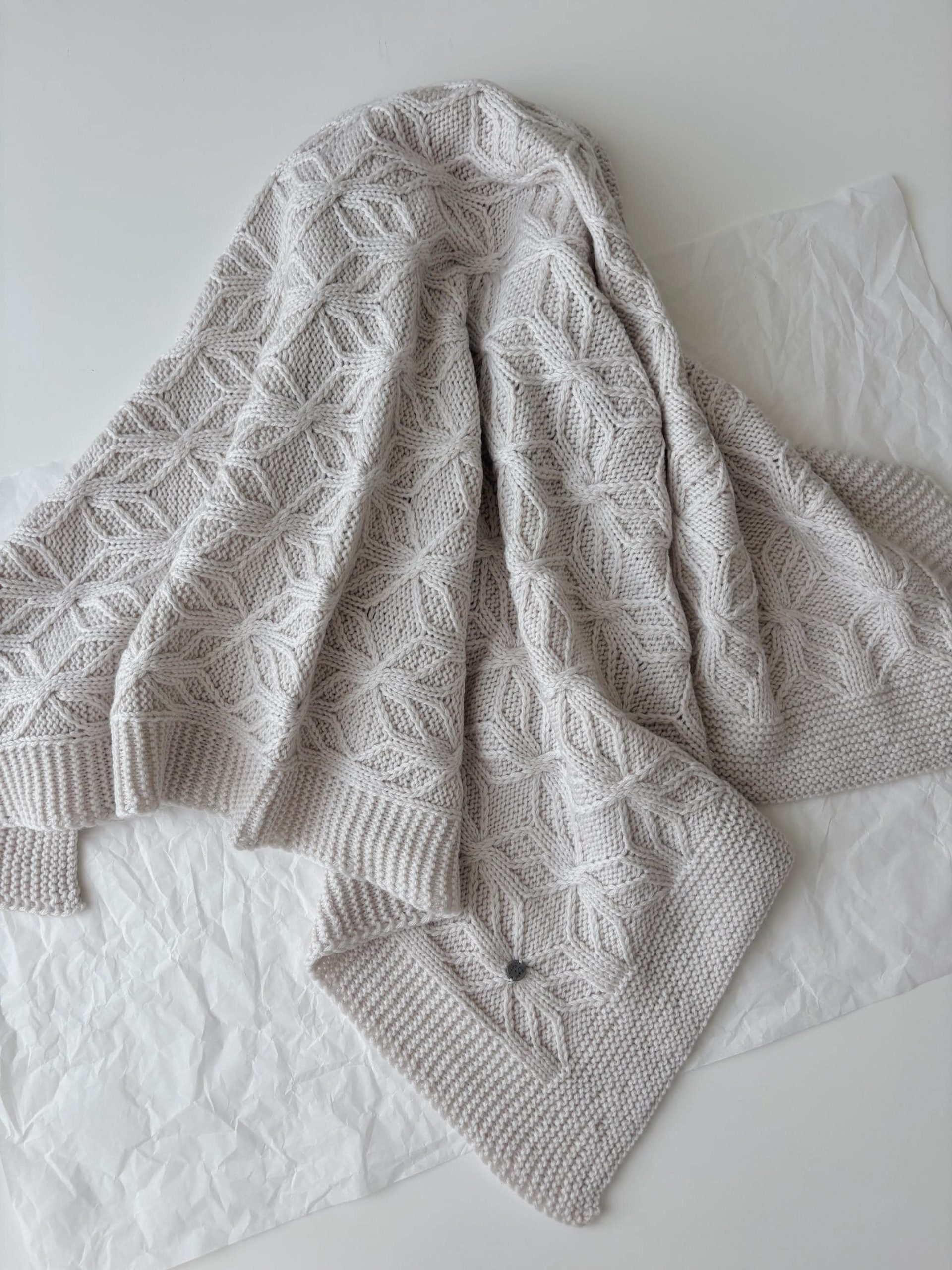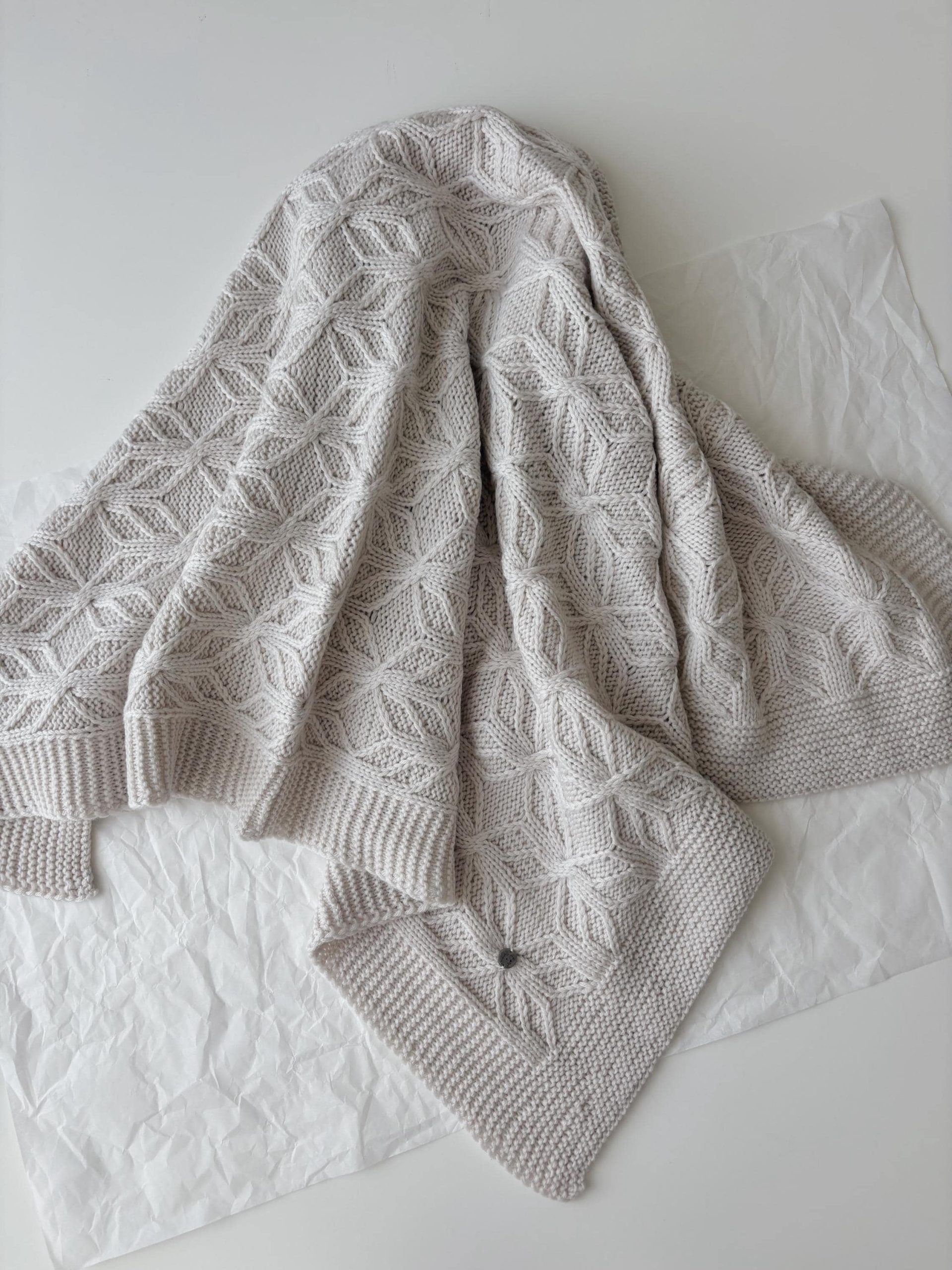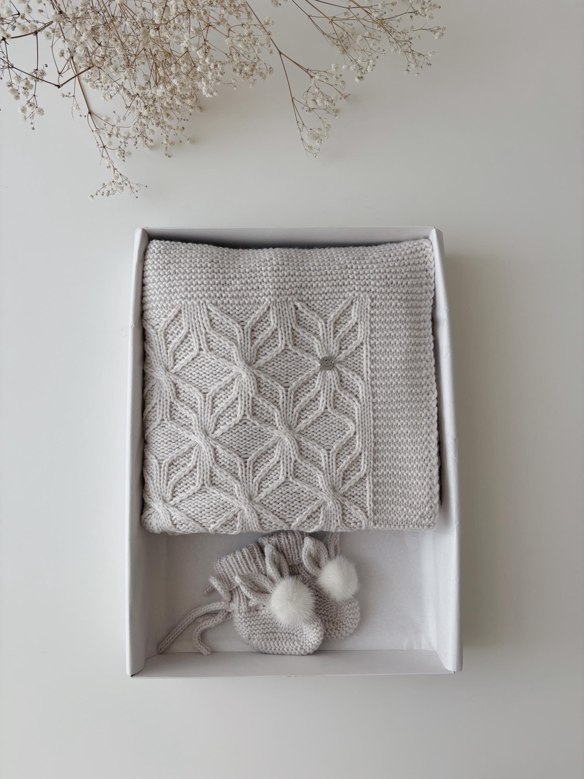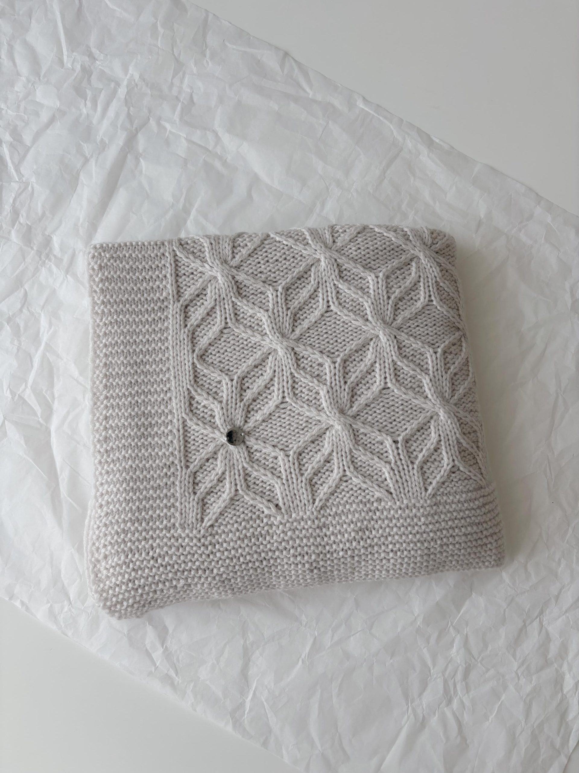 Hand Knitted Merino Baby Blanket – Beige, Geometric Design (100×90 cm)
