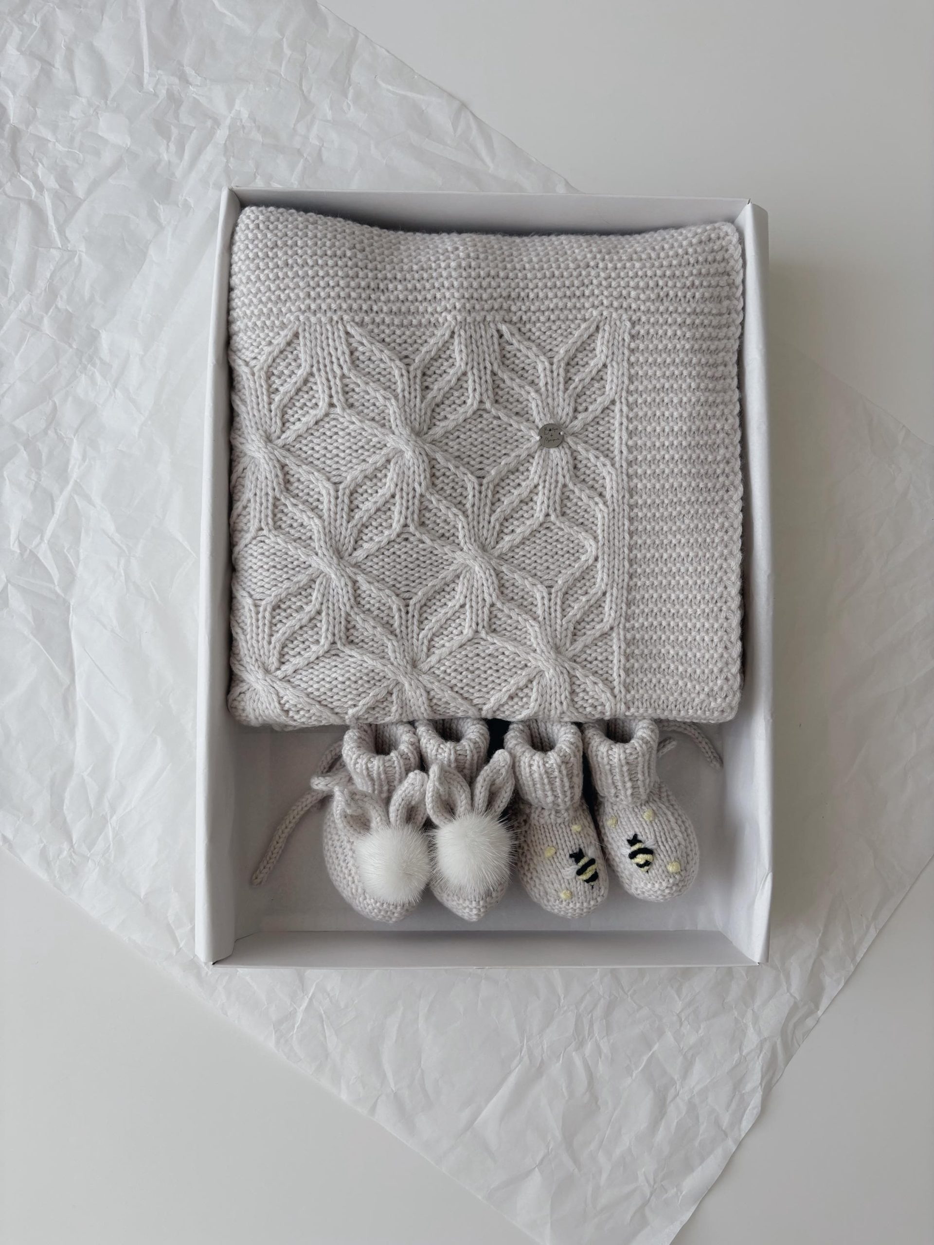 Knit Baby Alpaca Romper, Bonnet & Socks – Cream Newborn Set