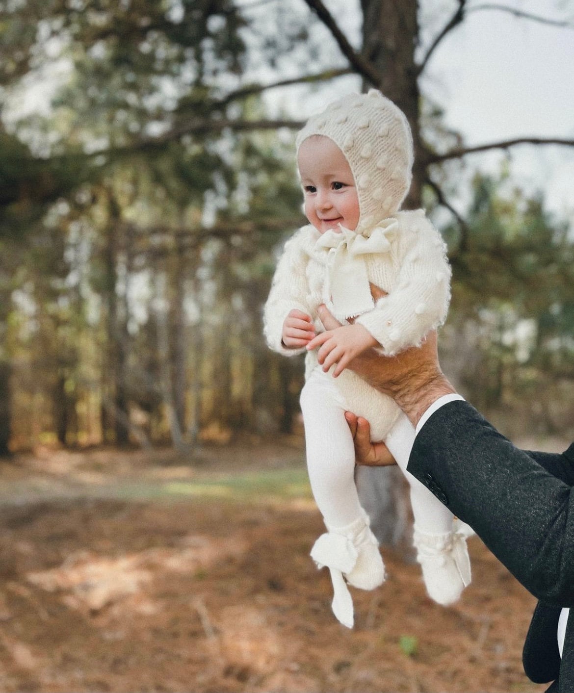 Embroidered Merino Baby Romper and Bonnet Set – Knitted Photo Prop