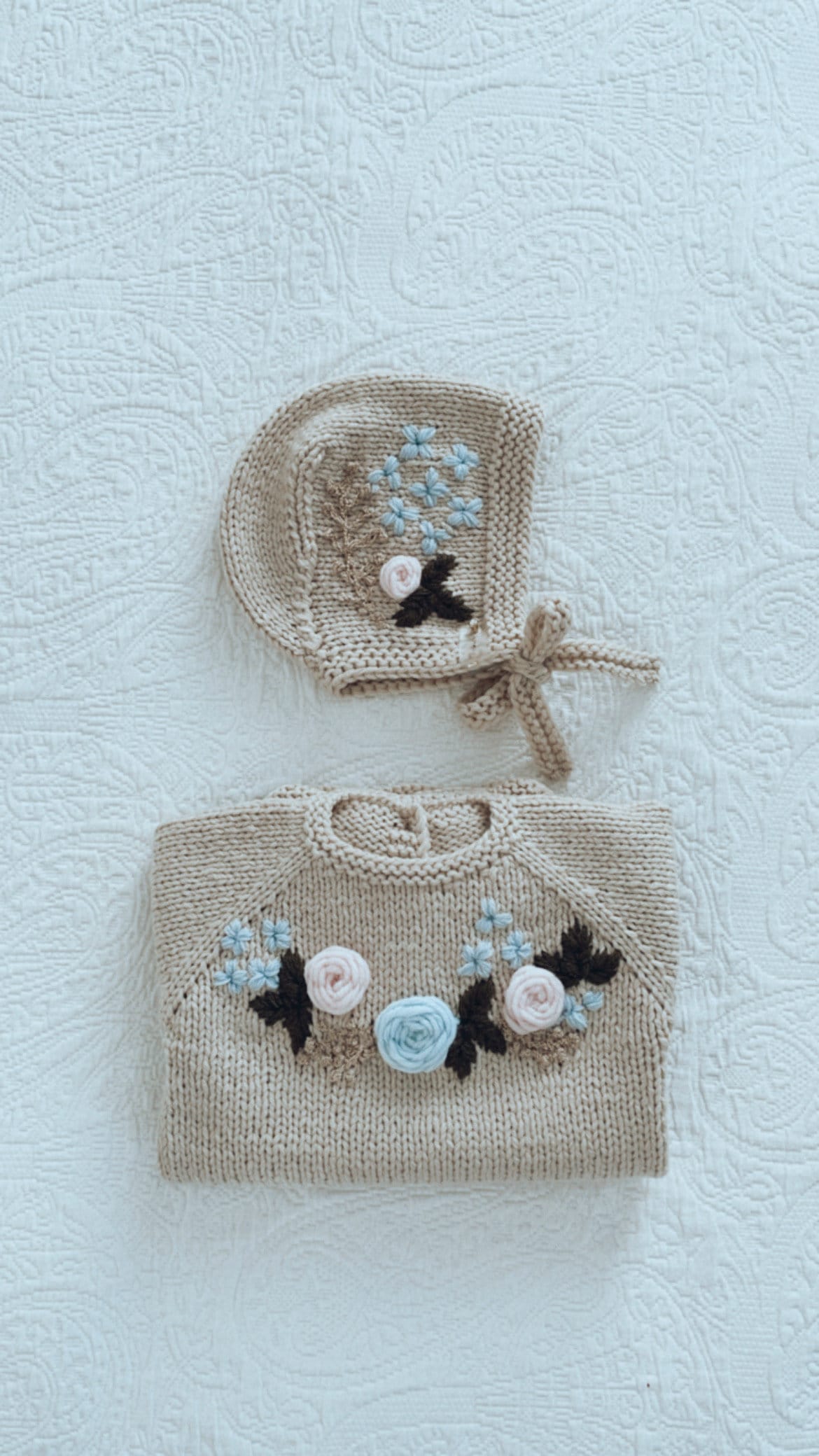 Knit Baby Alpaca Romper, Bonnet & Socks – Cream Newborn Set