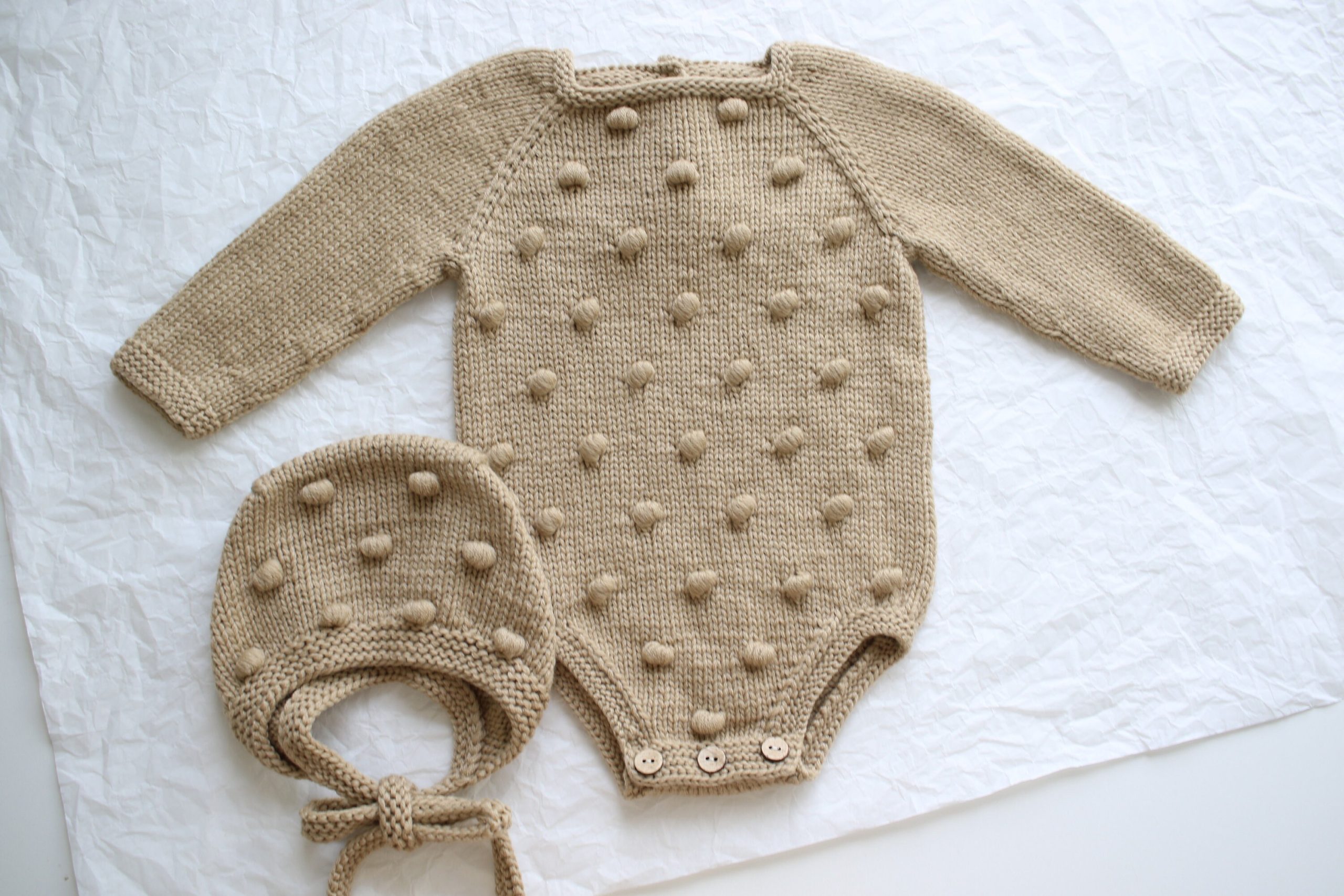 Cotton Baby Romper and Bonnet Set – Popcorn Knit Outfit