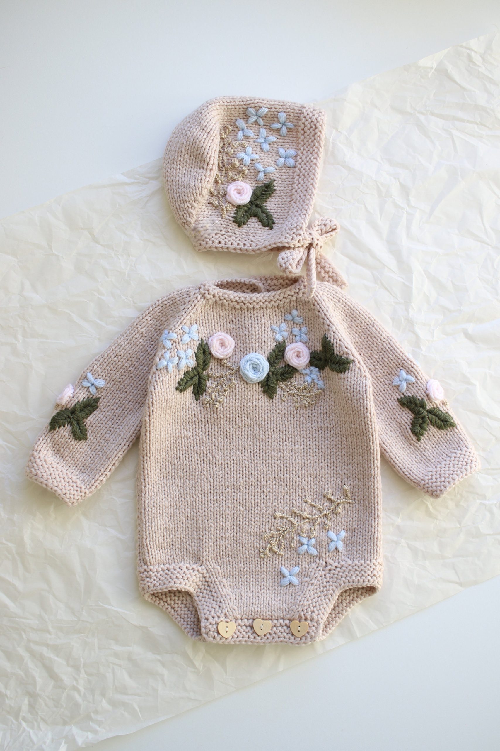 Hand Knit Merino Baby Romper and Bonnet Set – Photo Prop