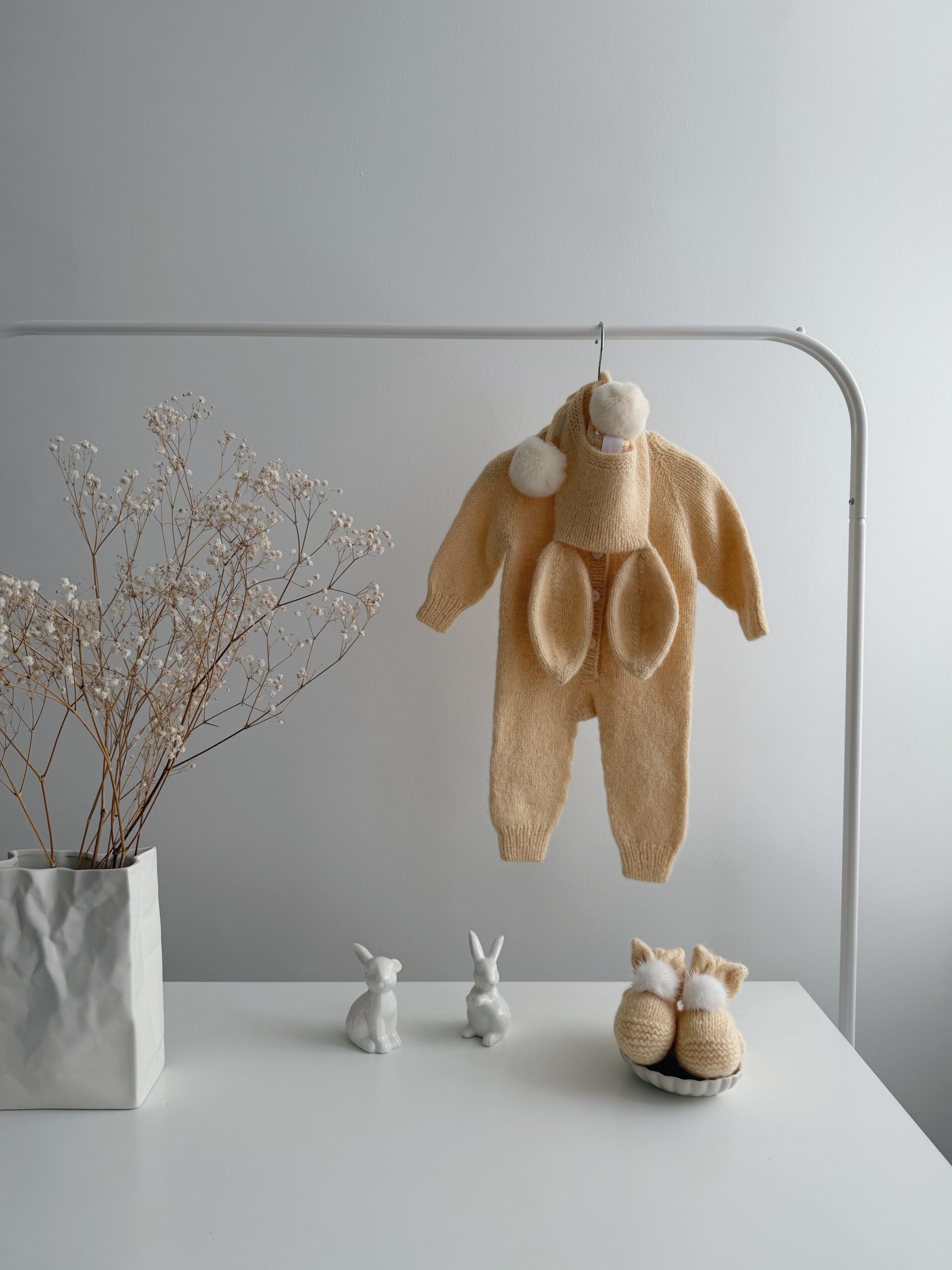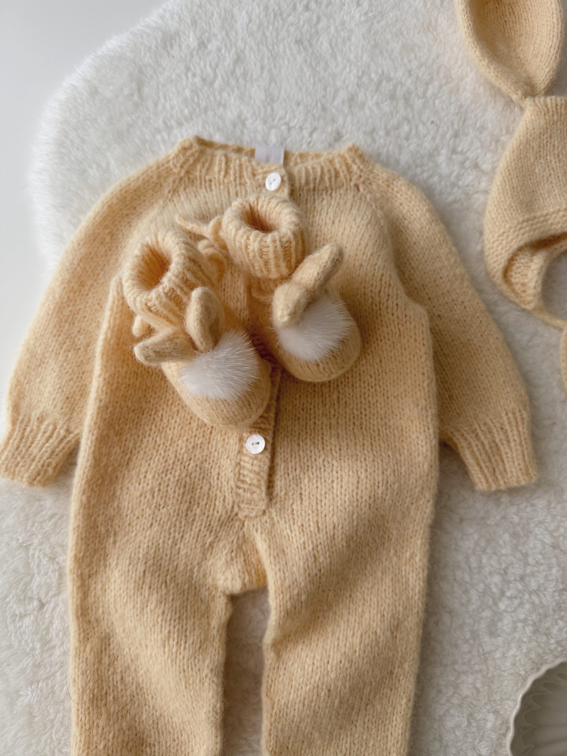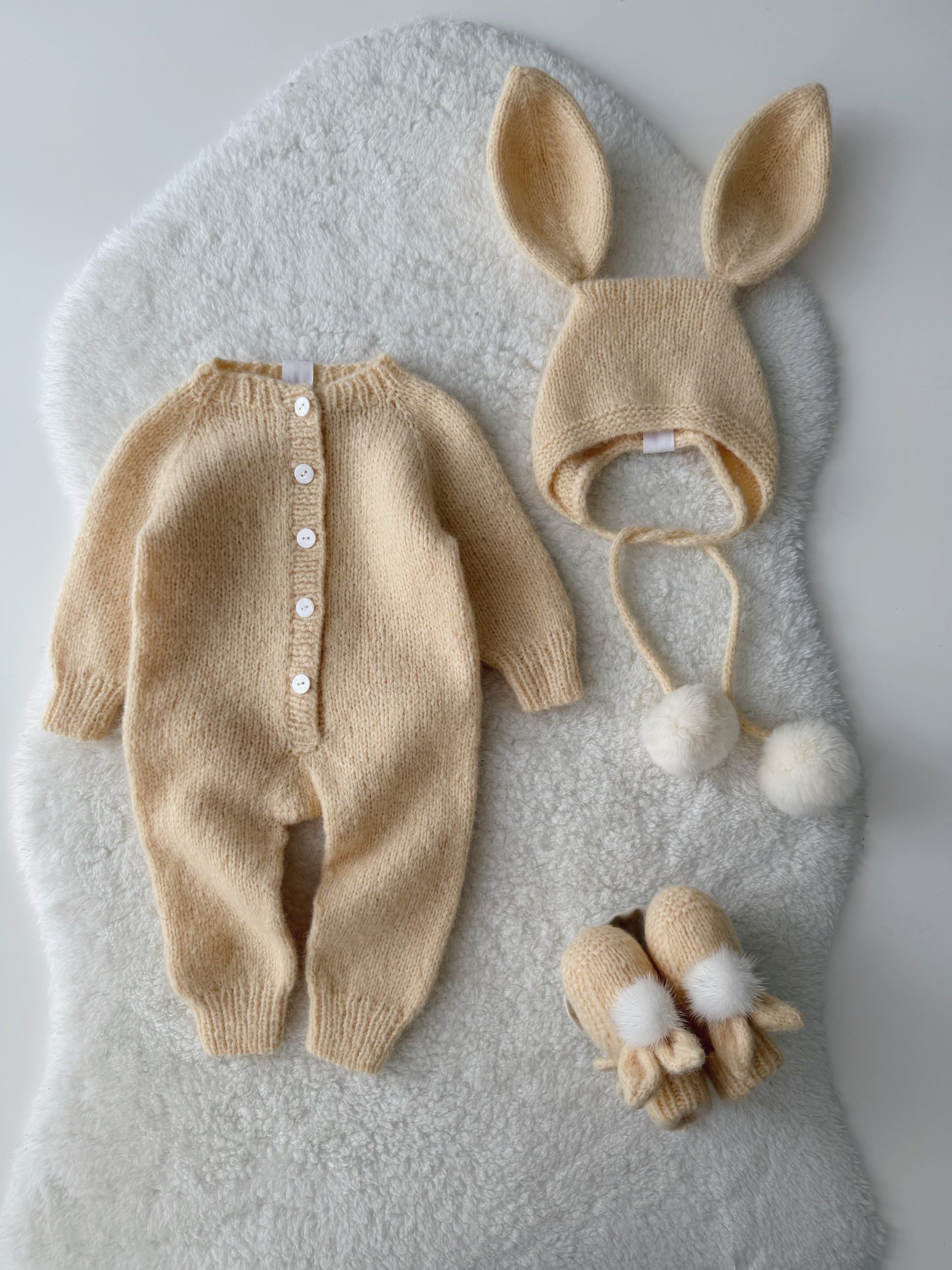 Alpaca Knit Baby Bunny Outfit – Romper and Bonnet Set
