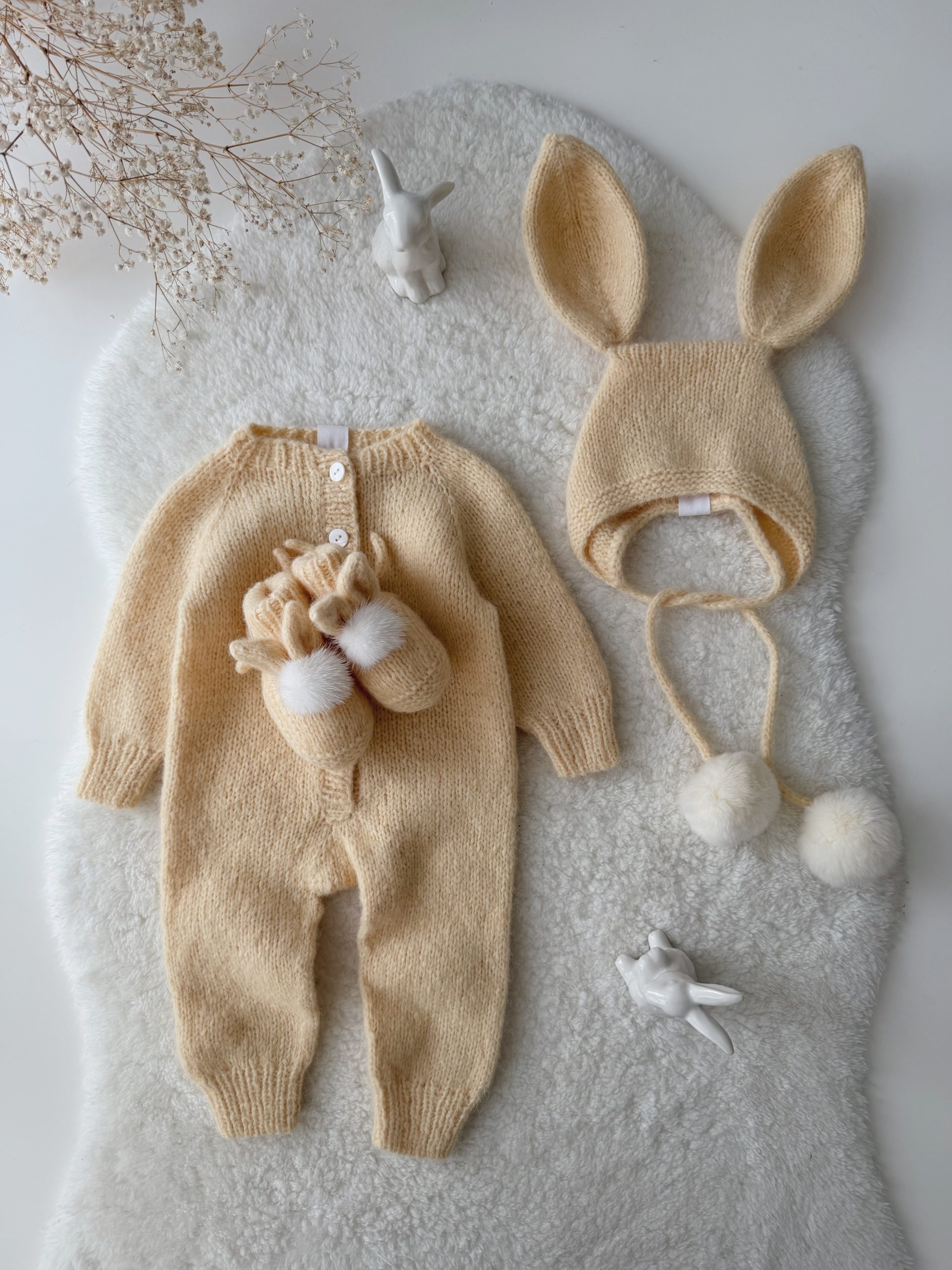 Knit Alpaca Baby Bunny Outfit – Bonnet & Booties Set