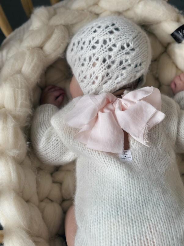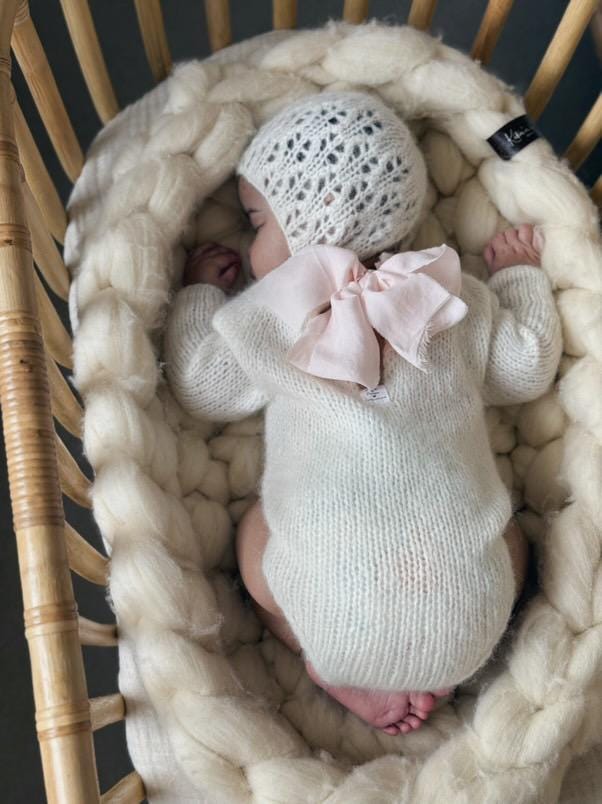 Knit Baby Alpaca Romper and Bonnet Set – Cream Photo Prop