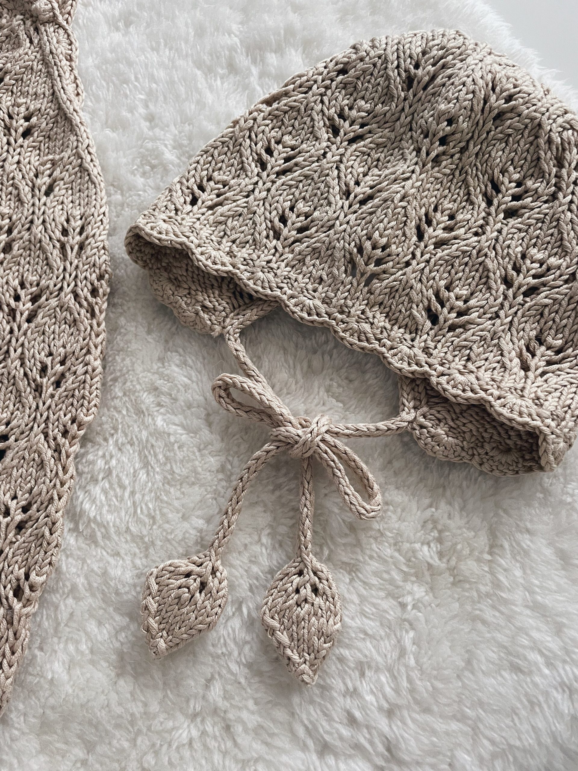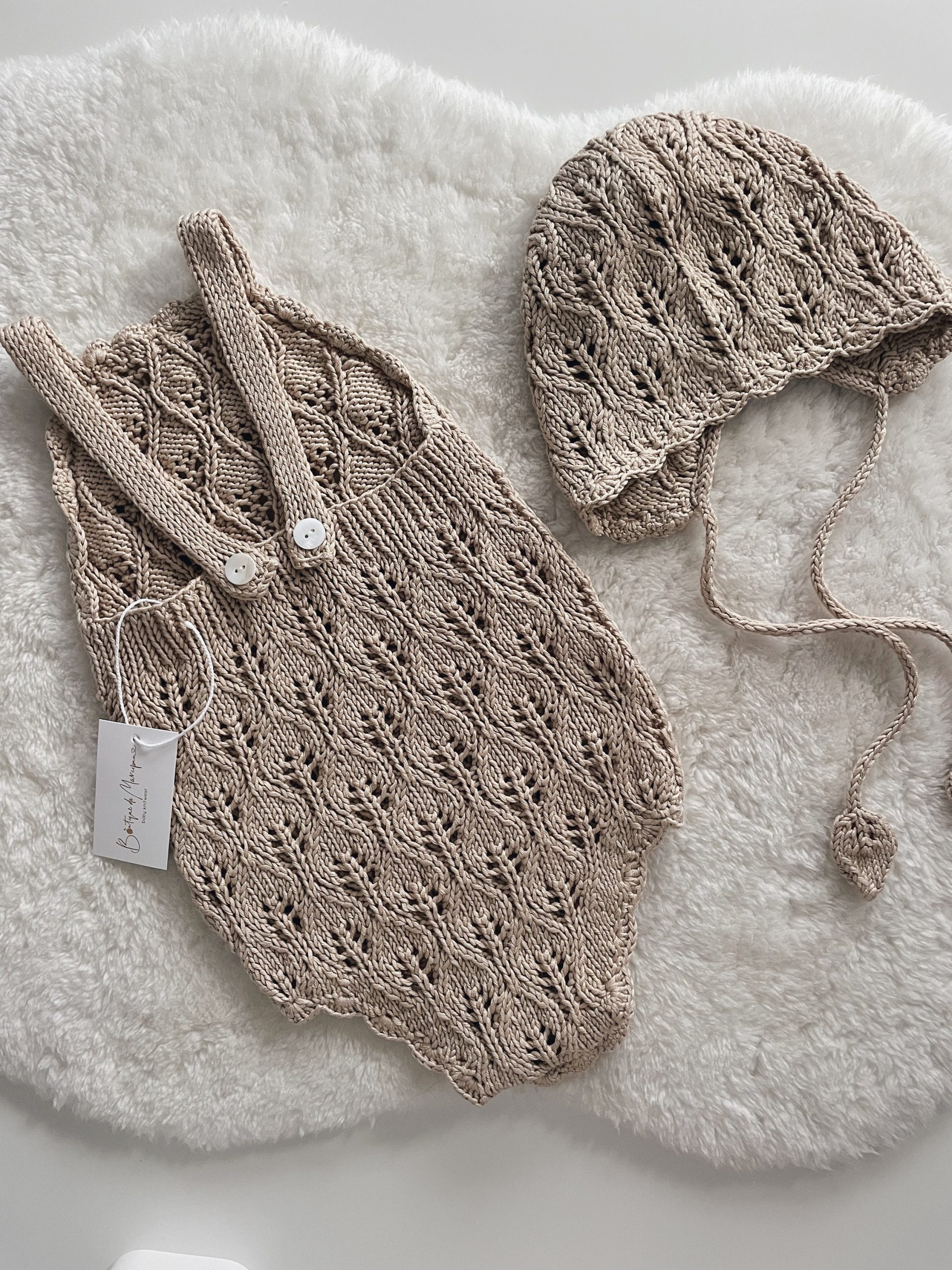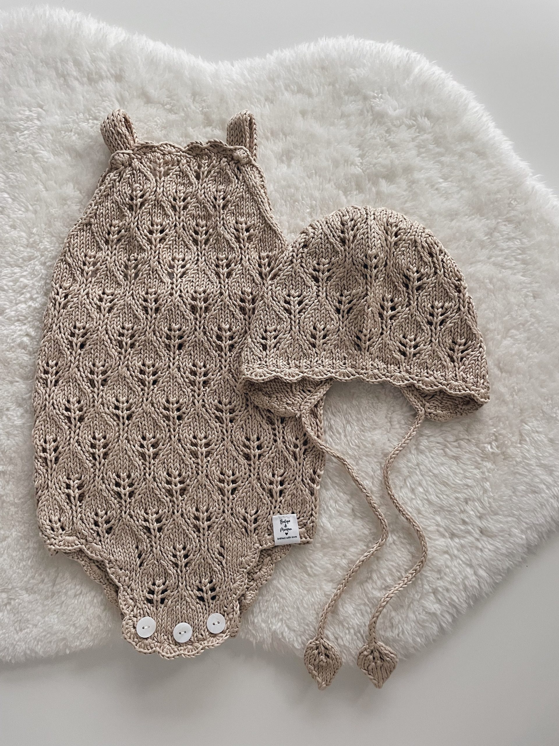Knitted Baby Romper and Bonnet Set – 100% Cotton