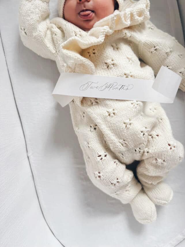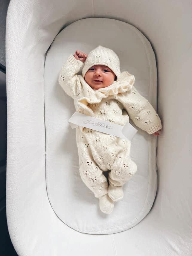 Embroidered Merino Baby Romper and Bonnet Set – Knitted Photo Prop