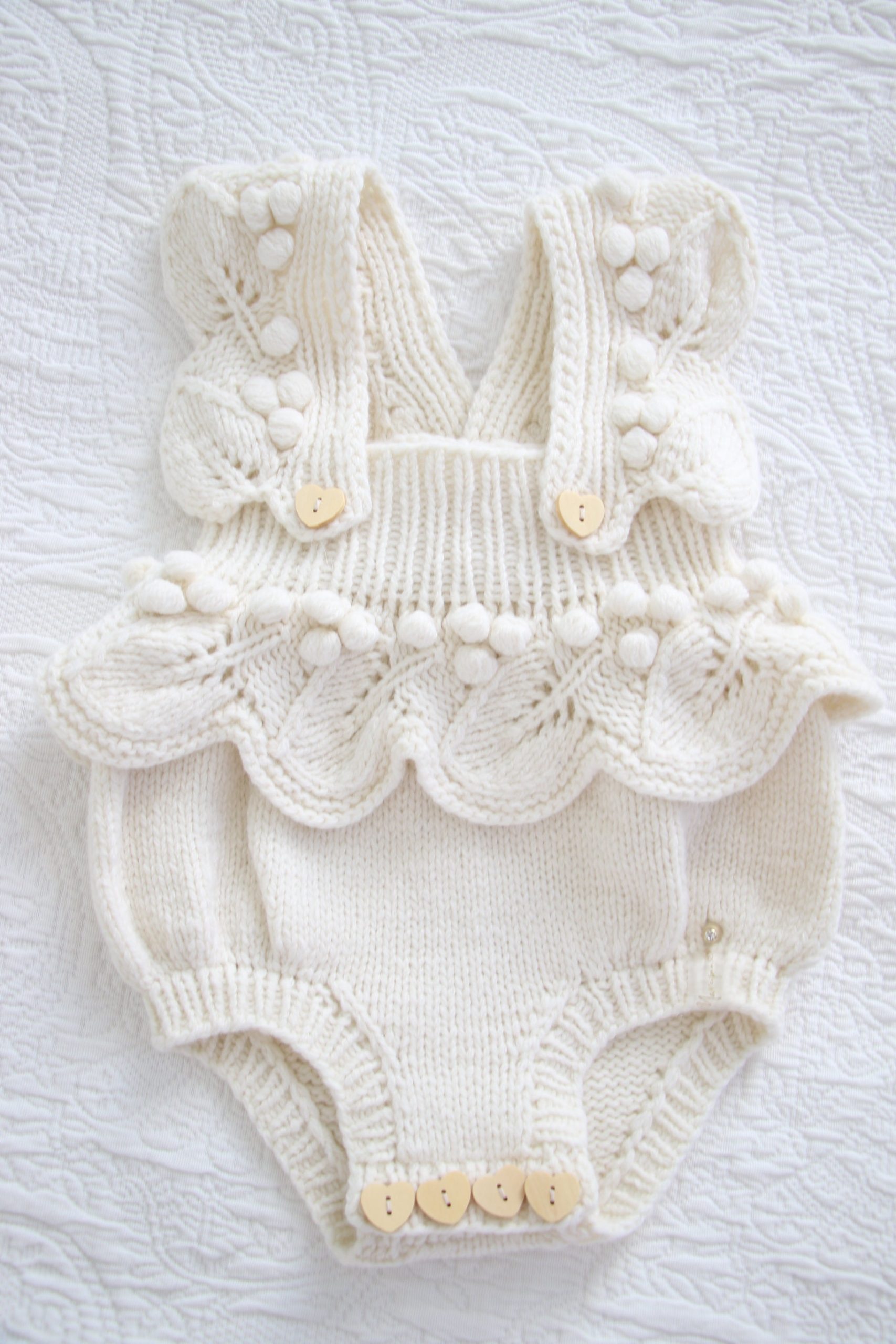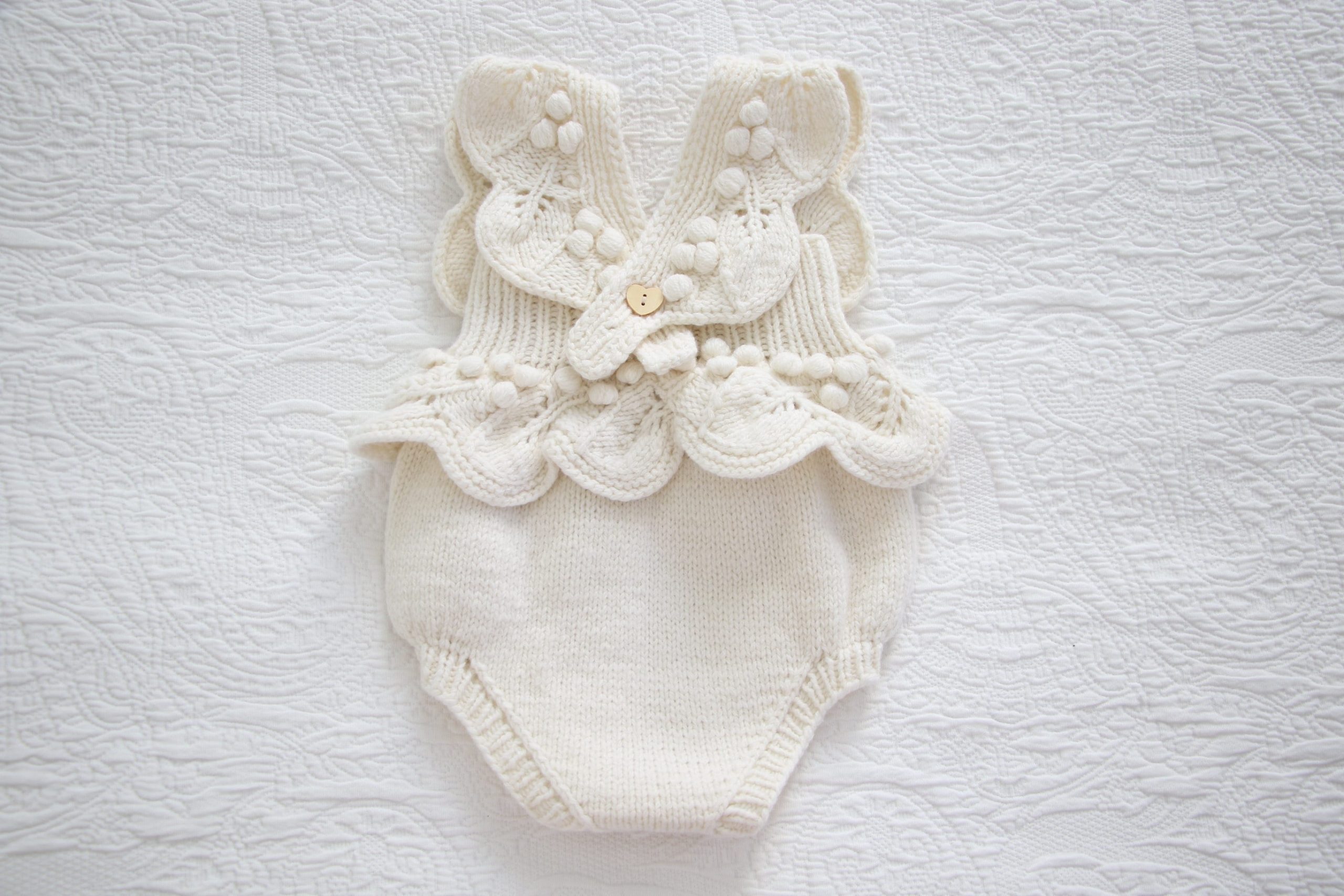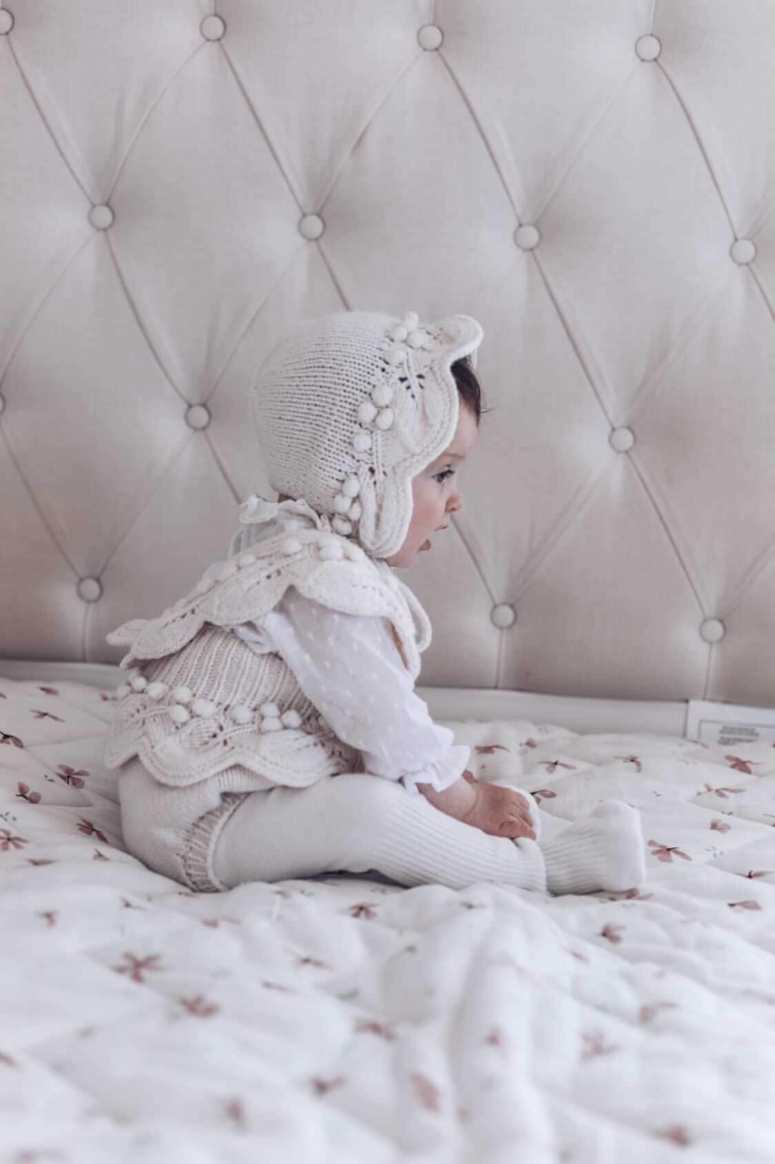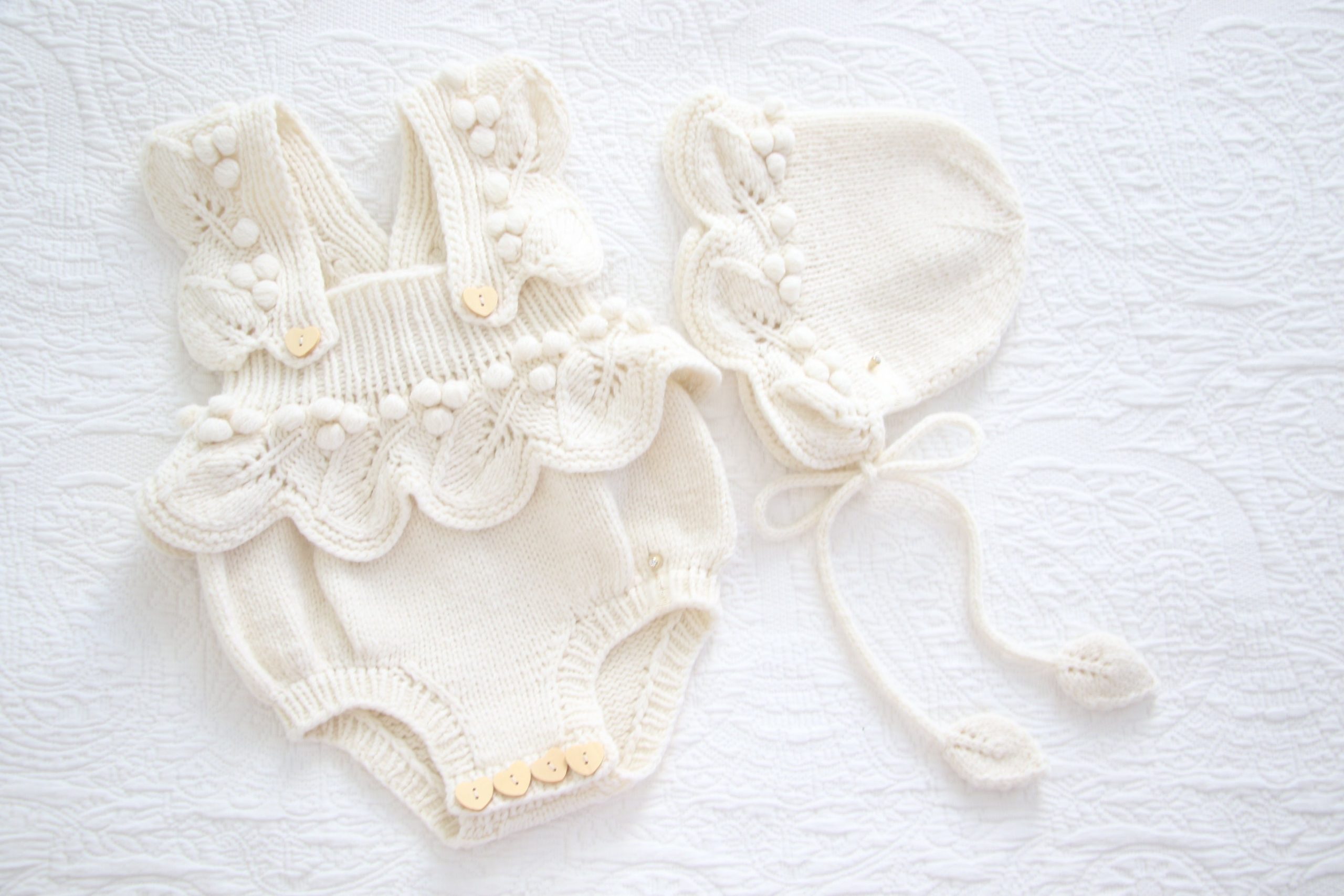 Embroidered Merino Baby Romper and Bonnet Set – Knitted Photo Prop