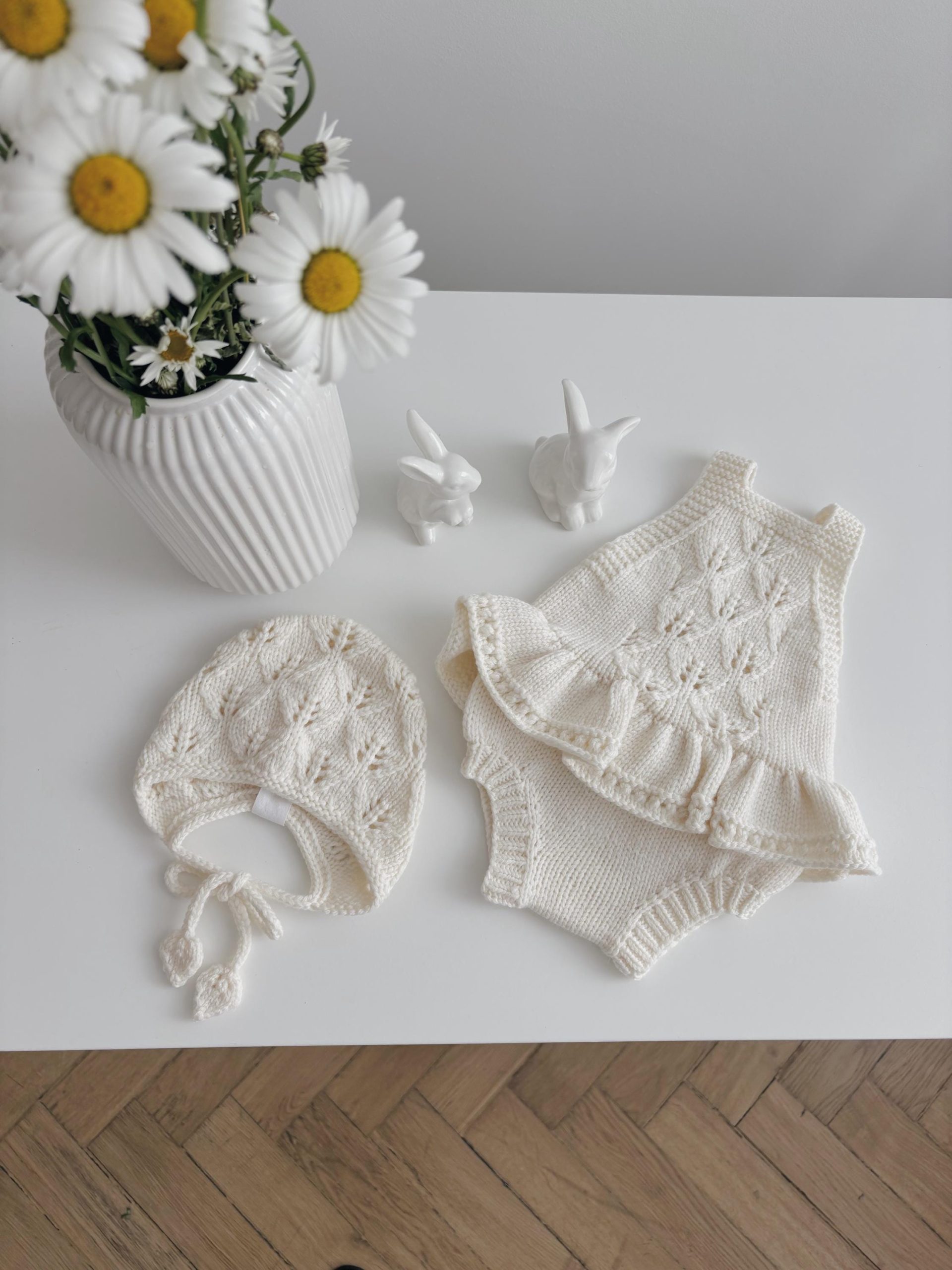 Hand-Knitted Merino Wool Baby Romper and Bonnet Set