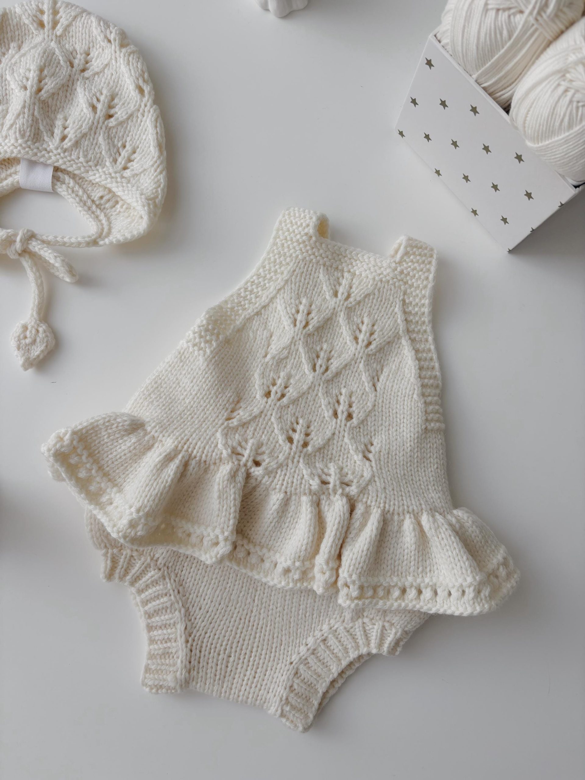 Cotton Knit Baby Romper Set – Cream Bonnet