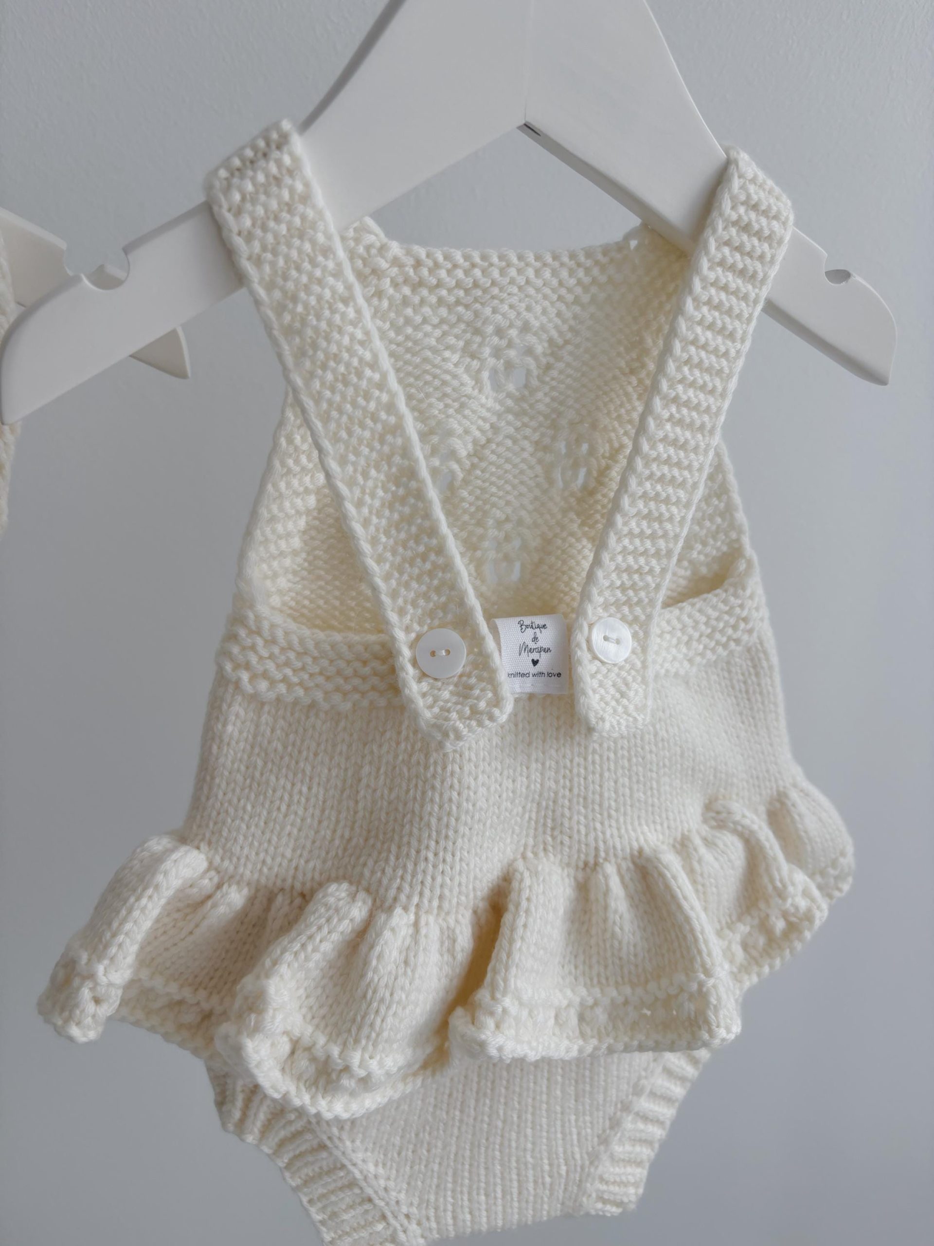 Knit Merino Wool Baby Romper Set – Cream Sleeveless Outfit