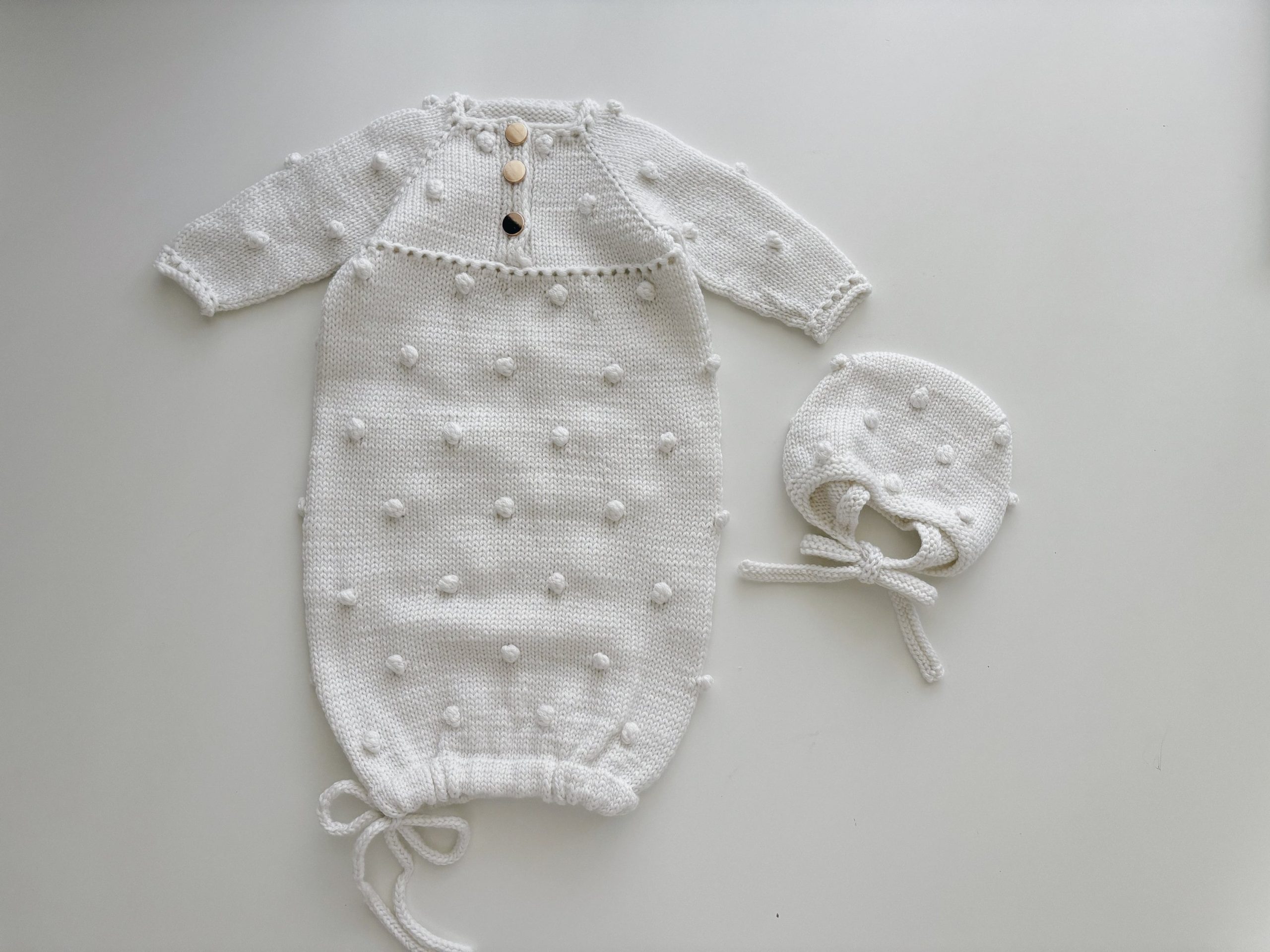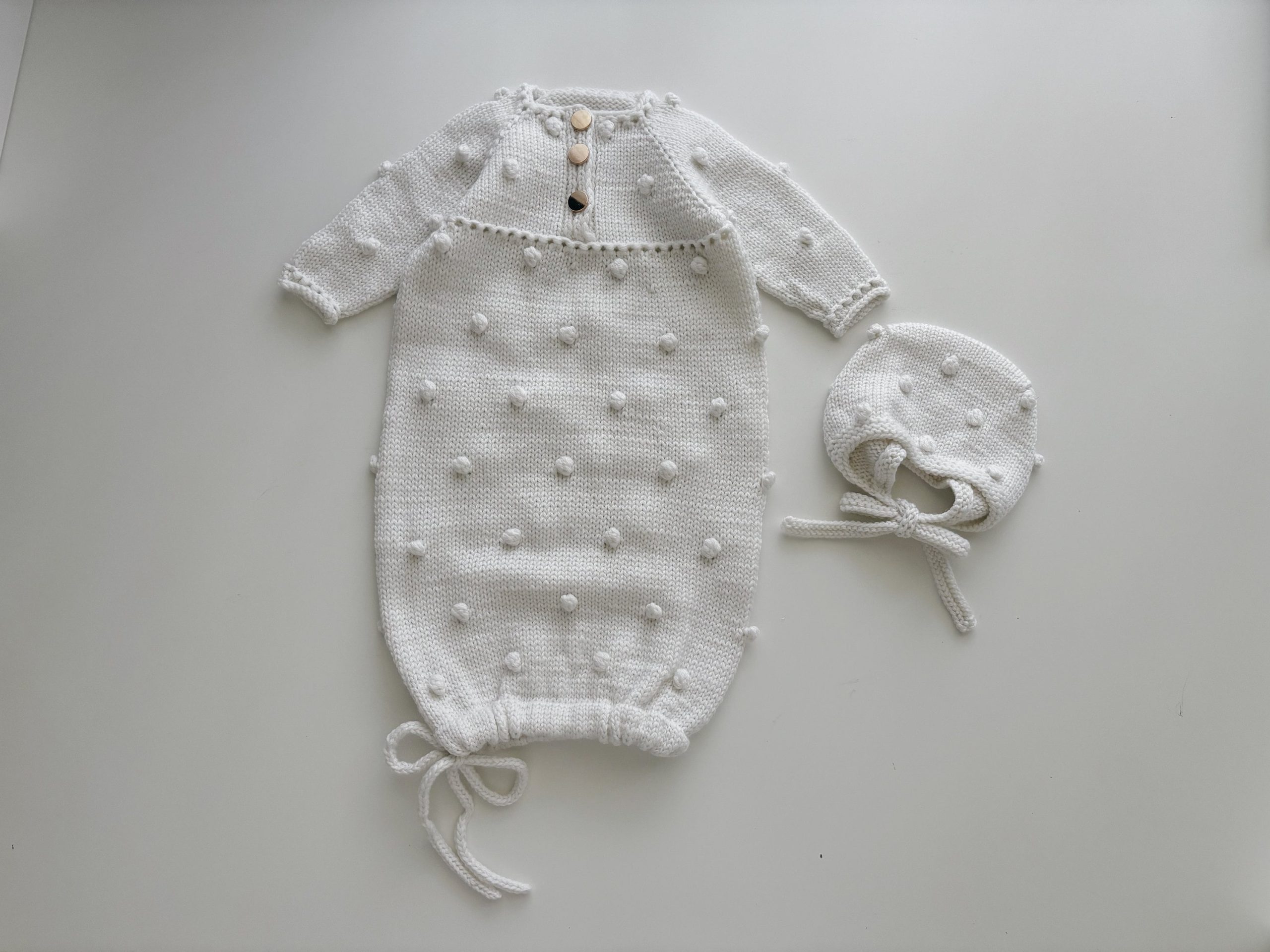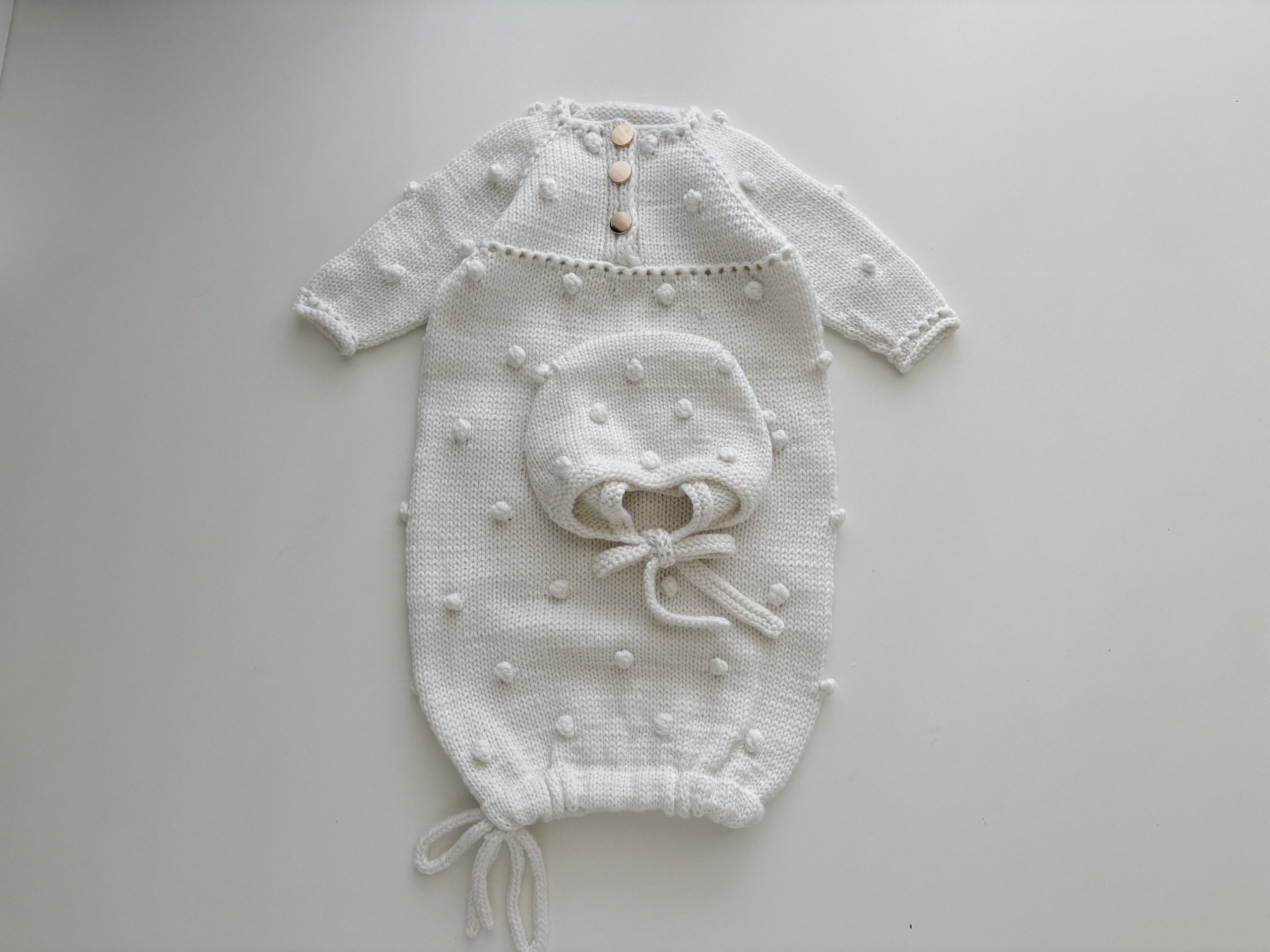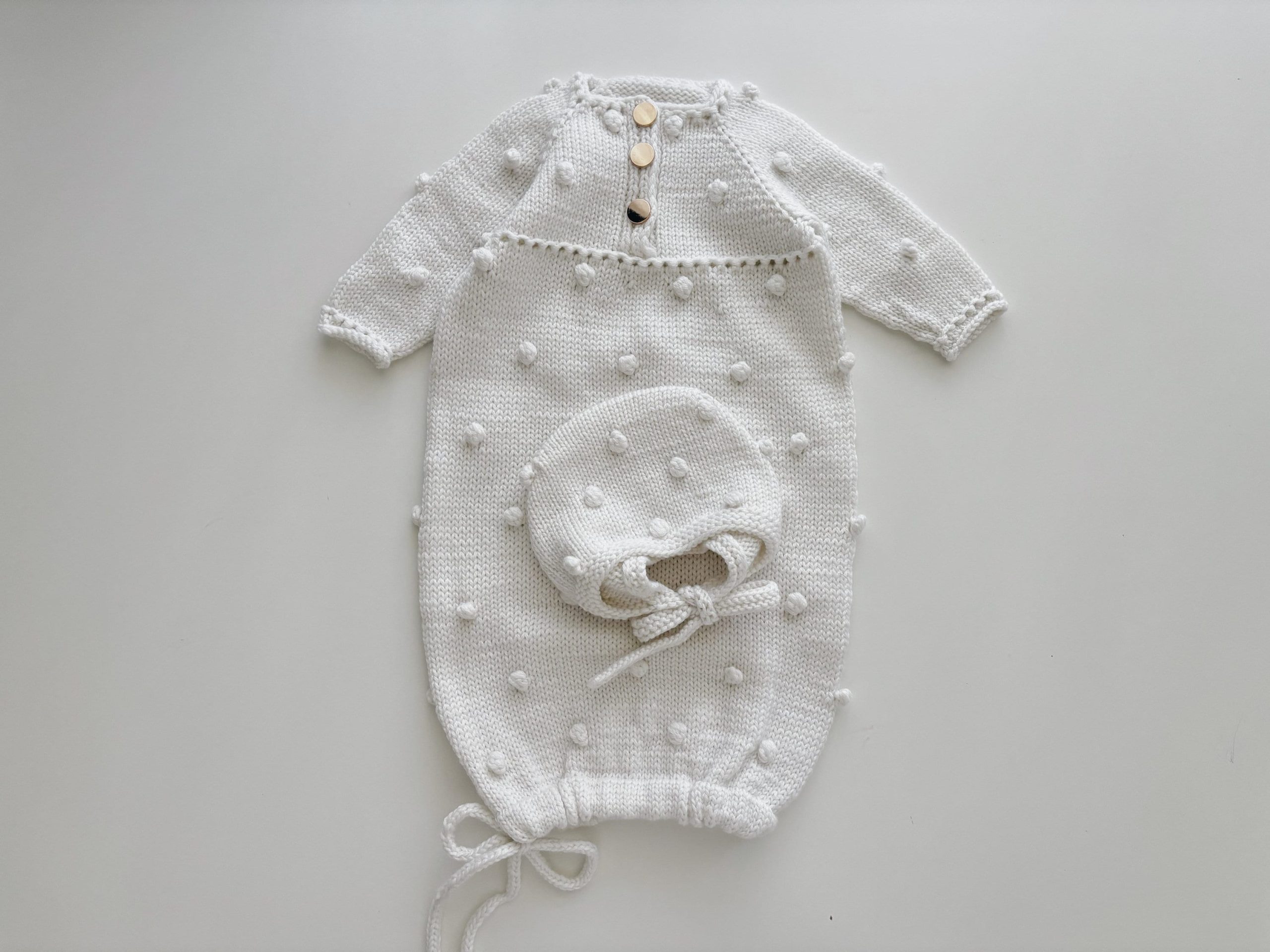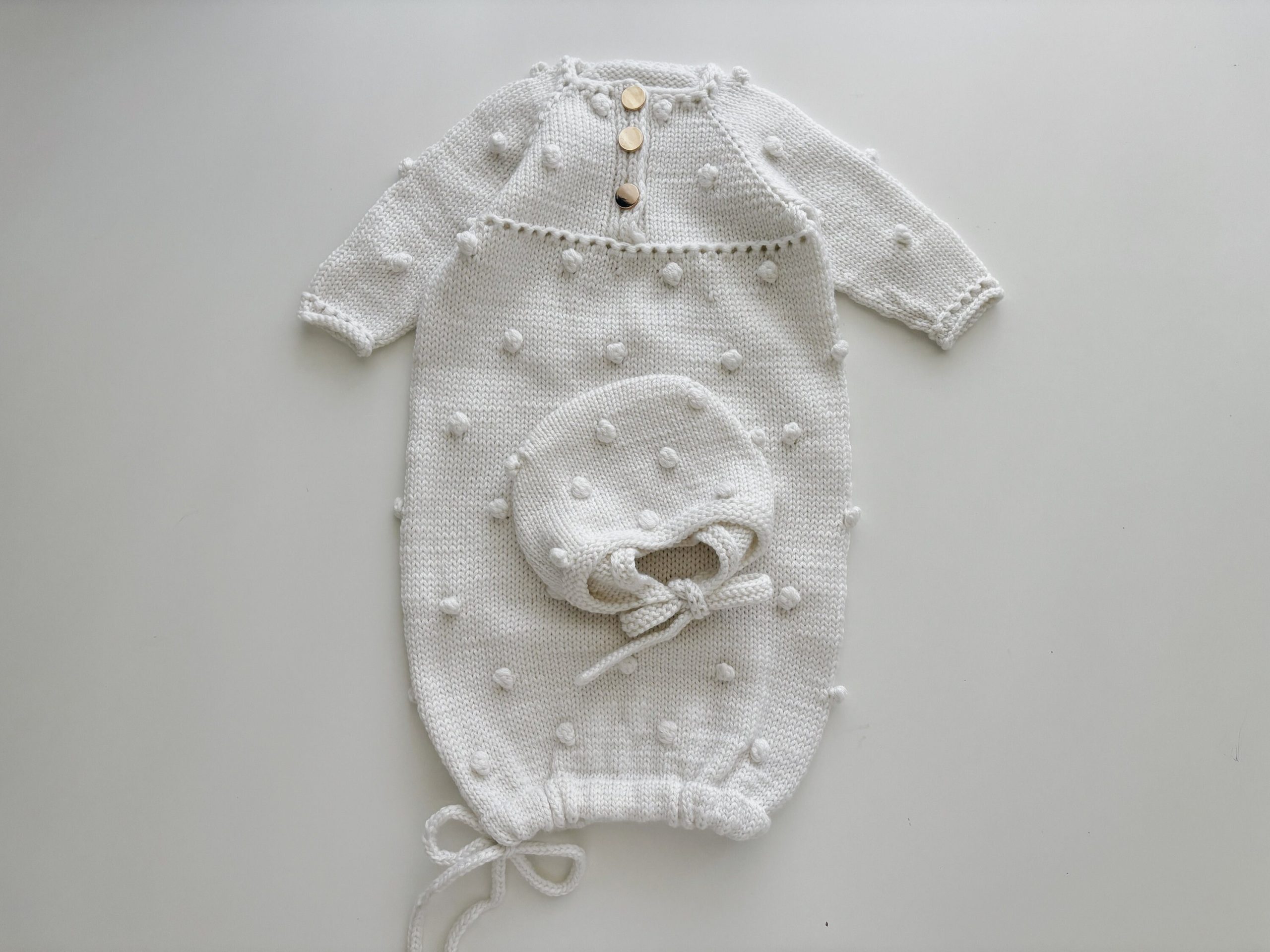Merino Baby Romper and Bonnet Set – White Knit Photo Prop
