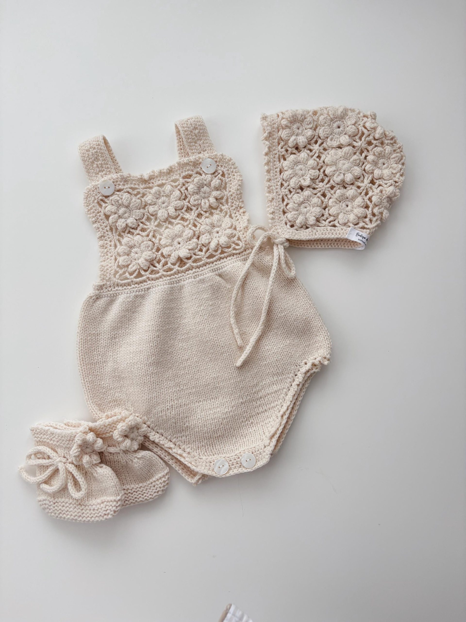 Merino Baby Romper Set – Cream Knit Bonnet & Booties