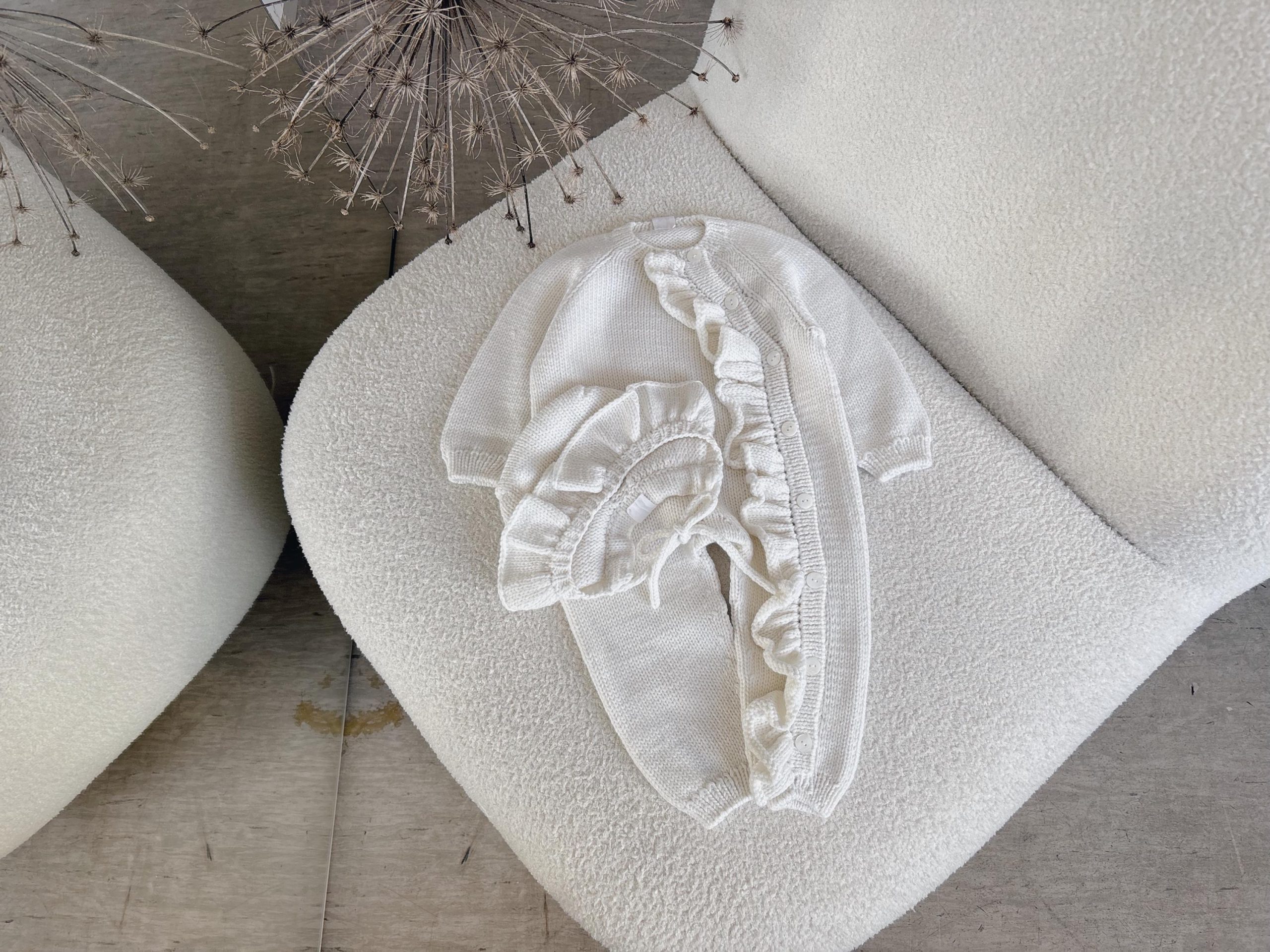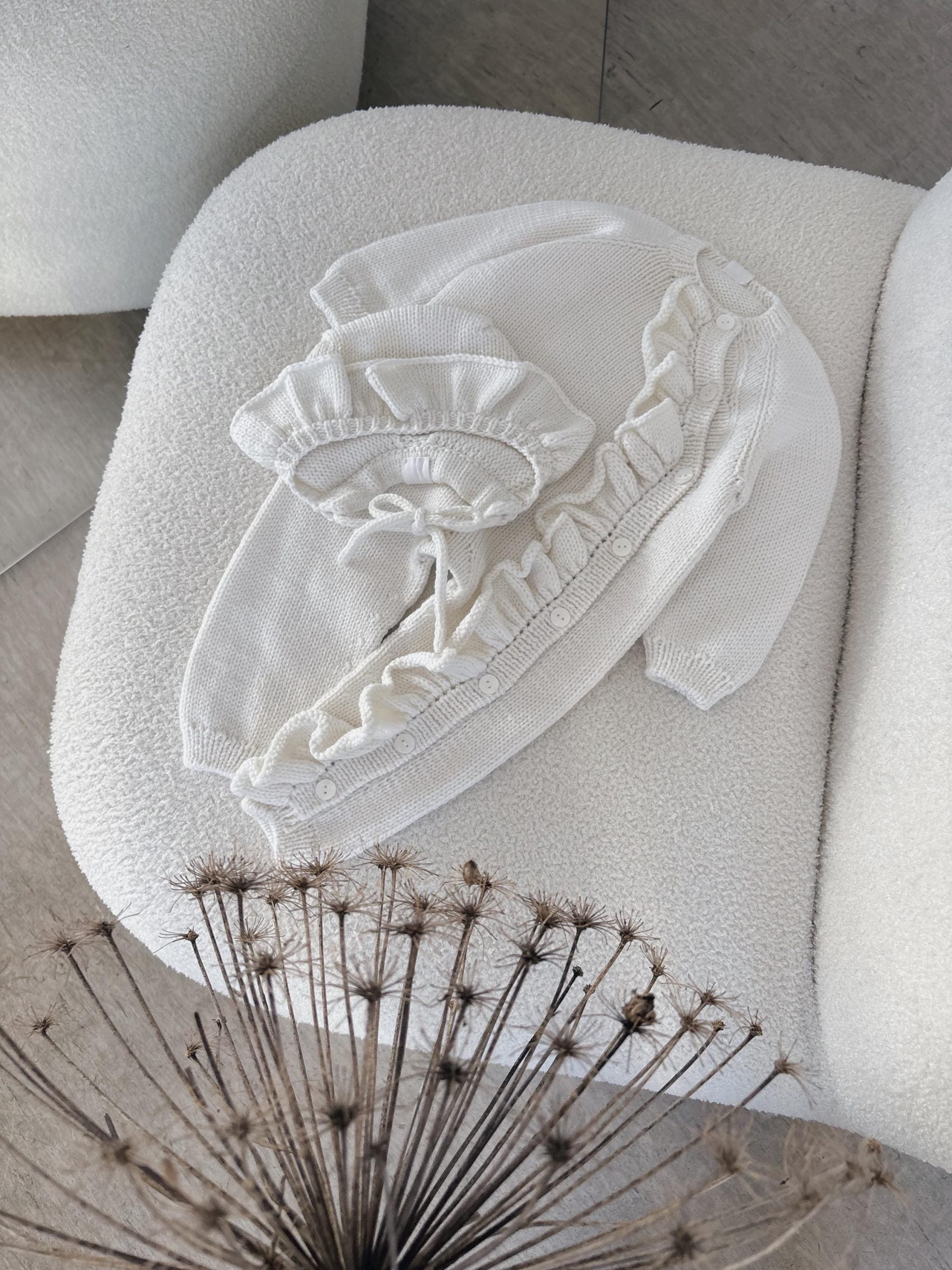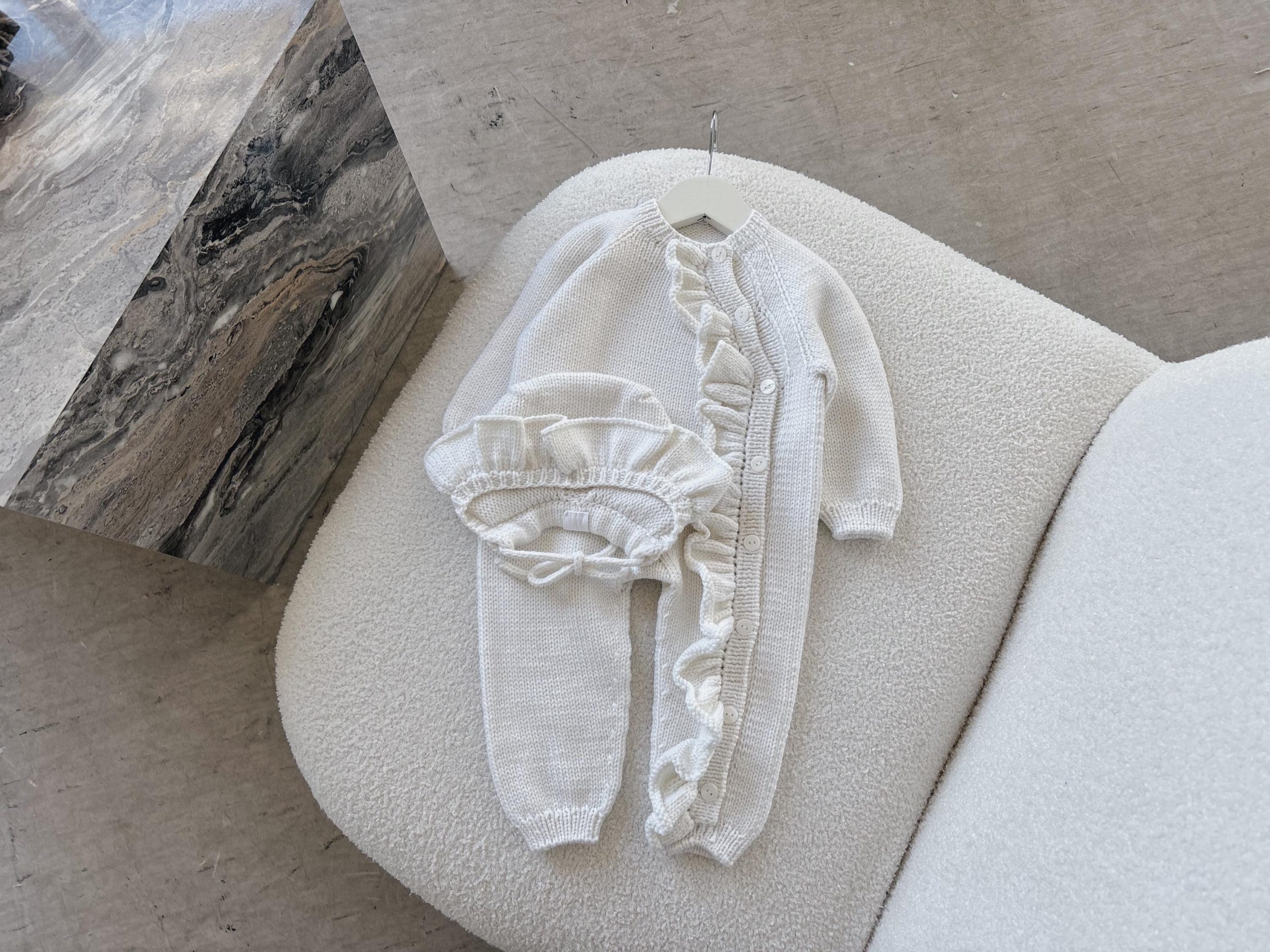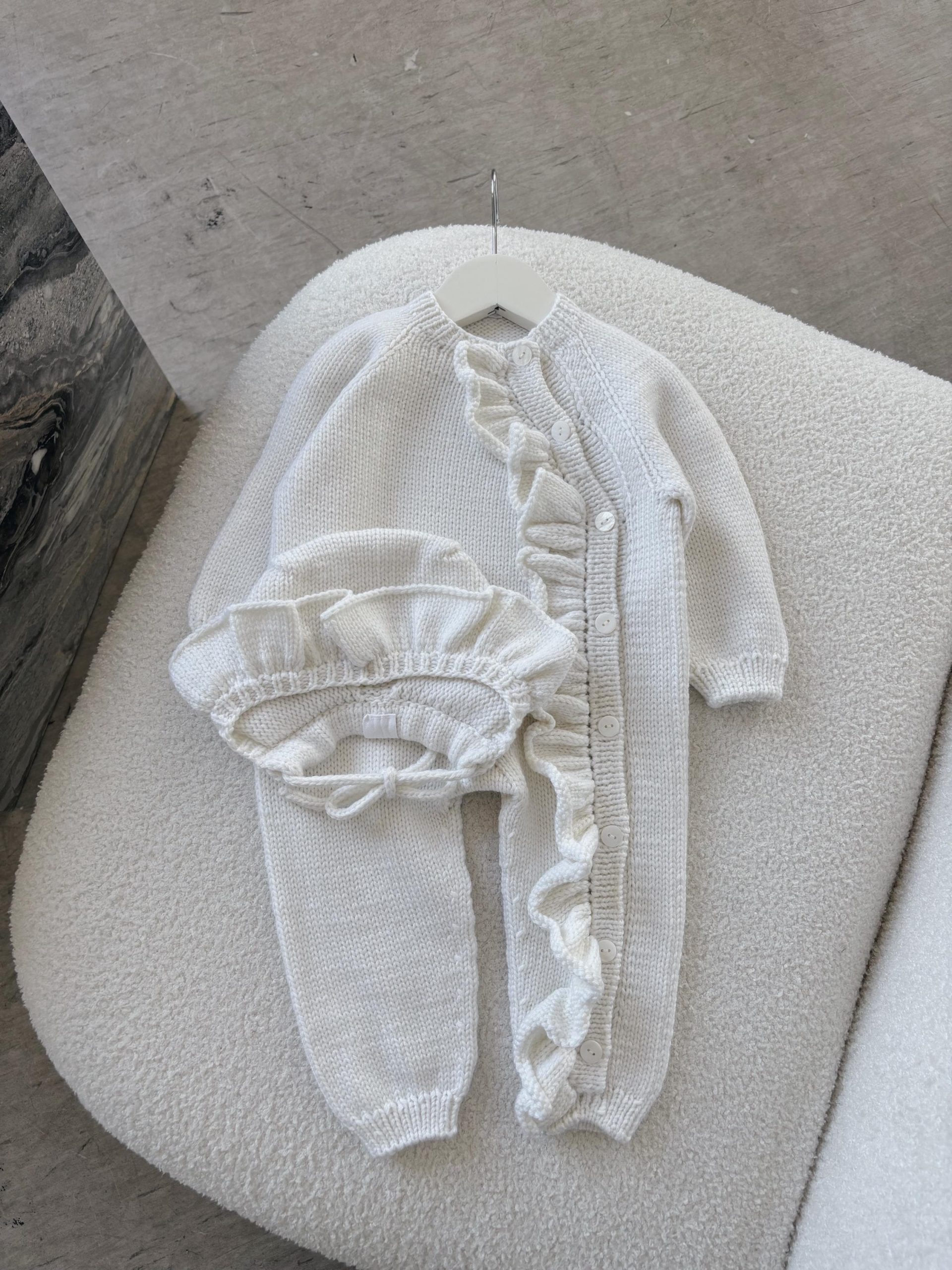 Merino Baby Romper Set – Ruffle Bonnet, Newborn Outfit