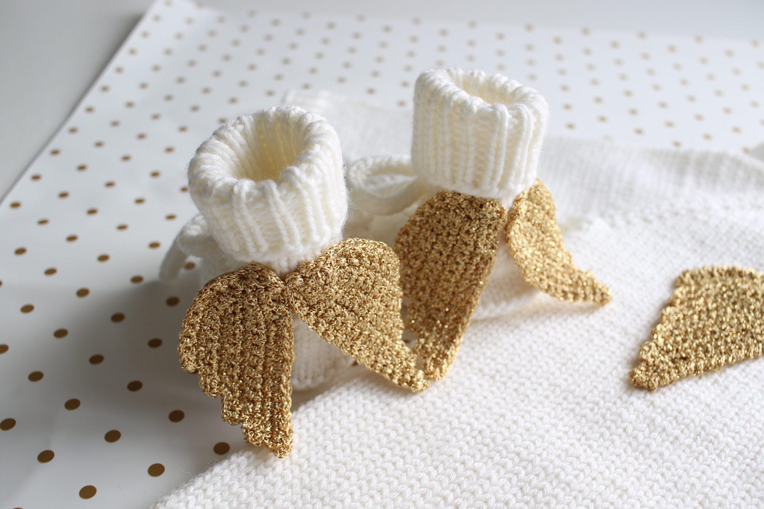 Merino Knit Baby Angel Outfit – Romper, Bonnet & Booties