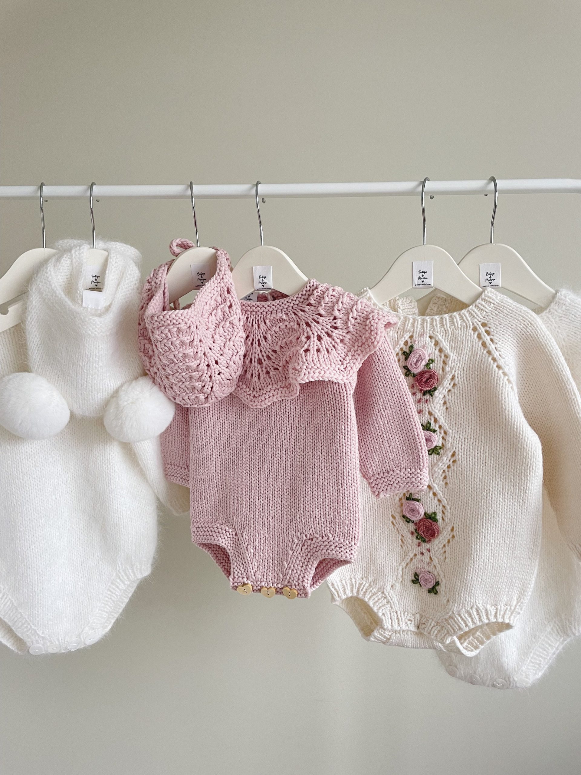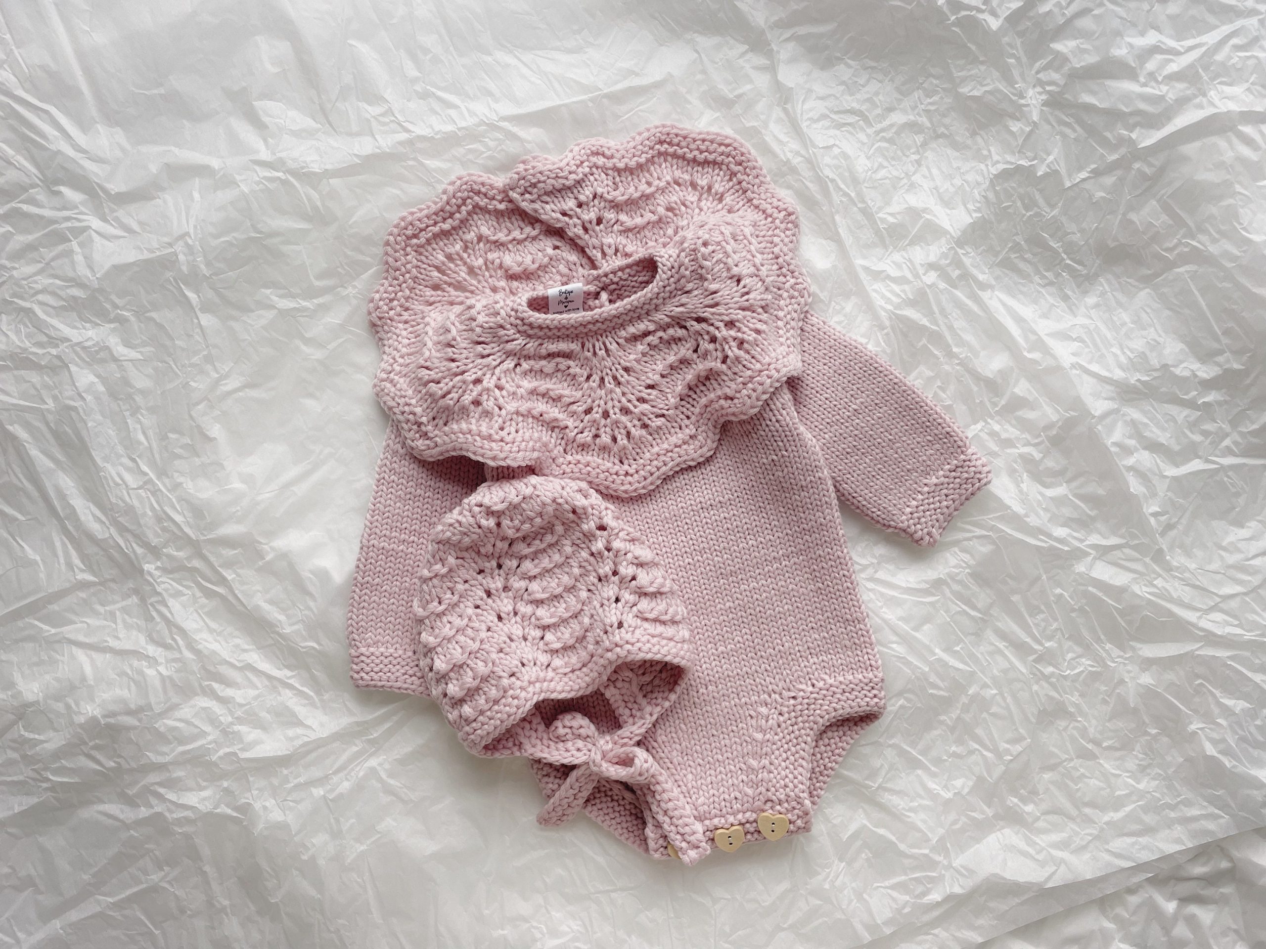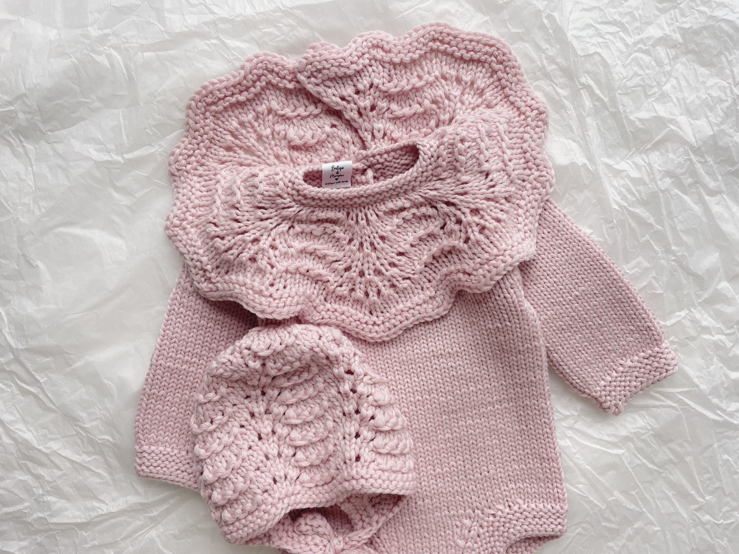 Hand Knit Merino Baby Romper and Bonnet Set – Photo Prop