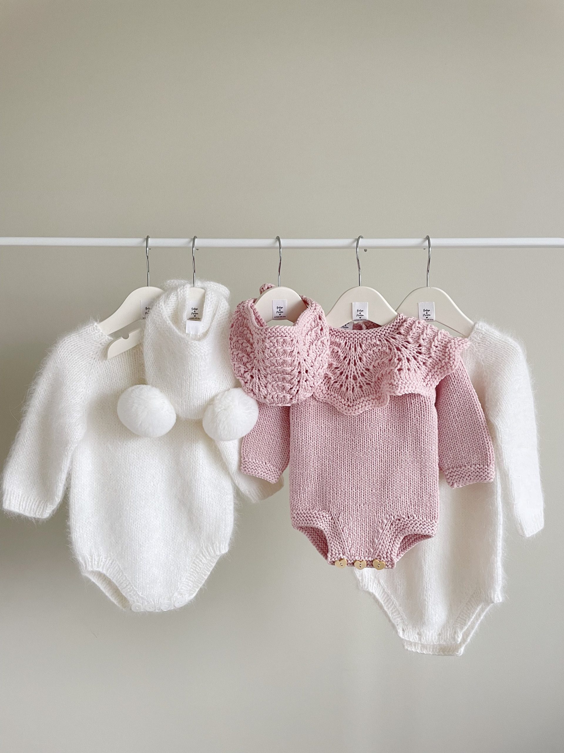 Embroidered Angora Baby Romper & Bonnet Set – Milky White Outfit