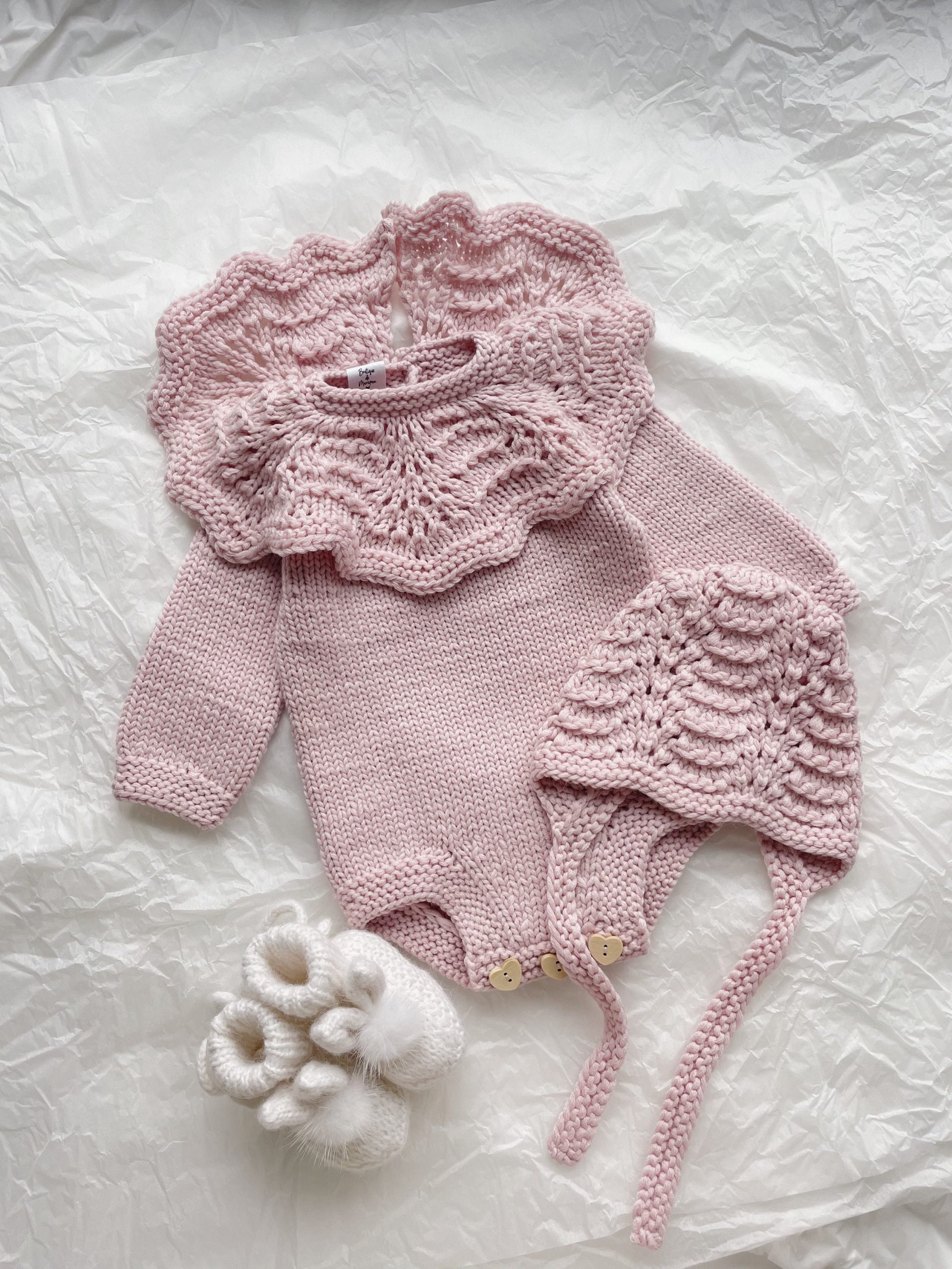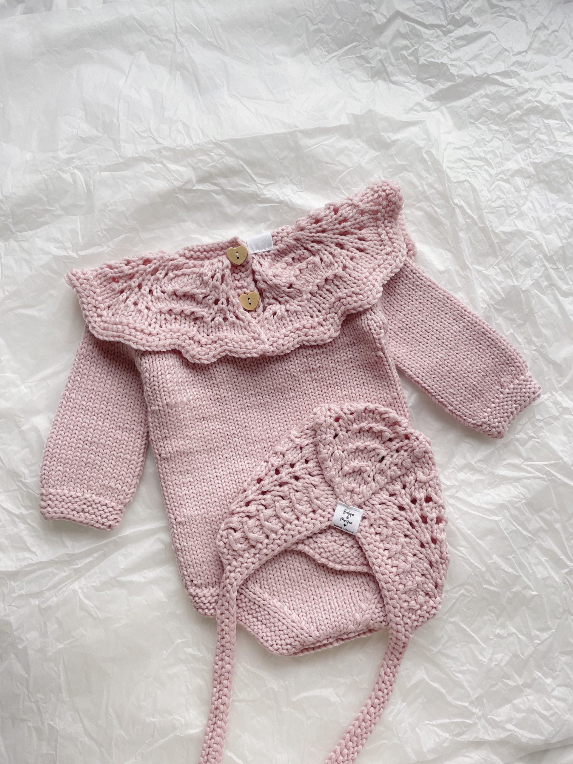 Merino Wool Baby Romper and Bonnet Set – Knitted Photo Prop