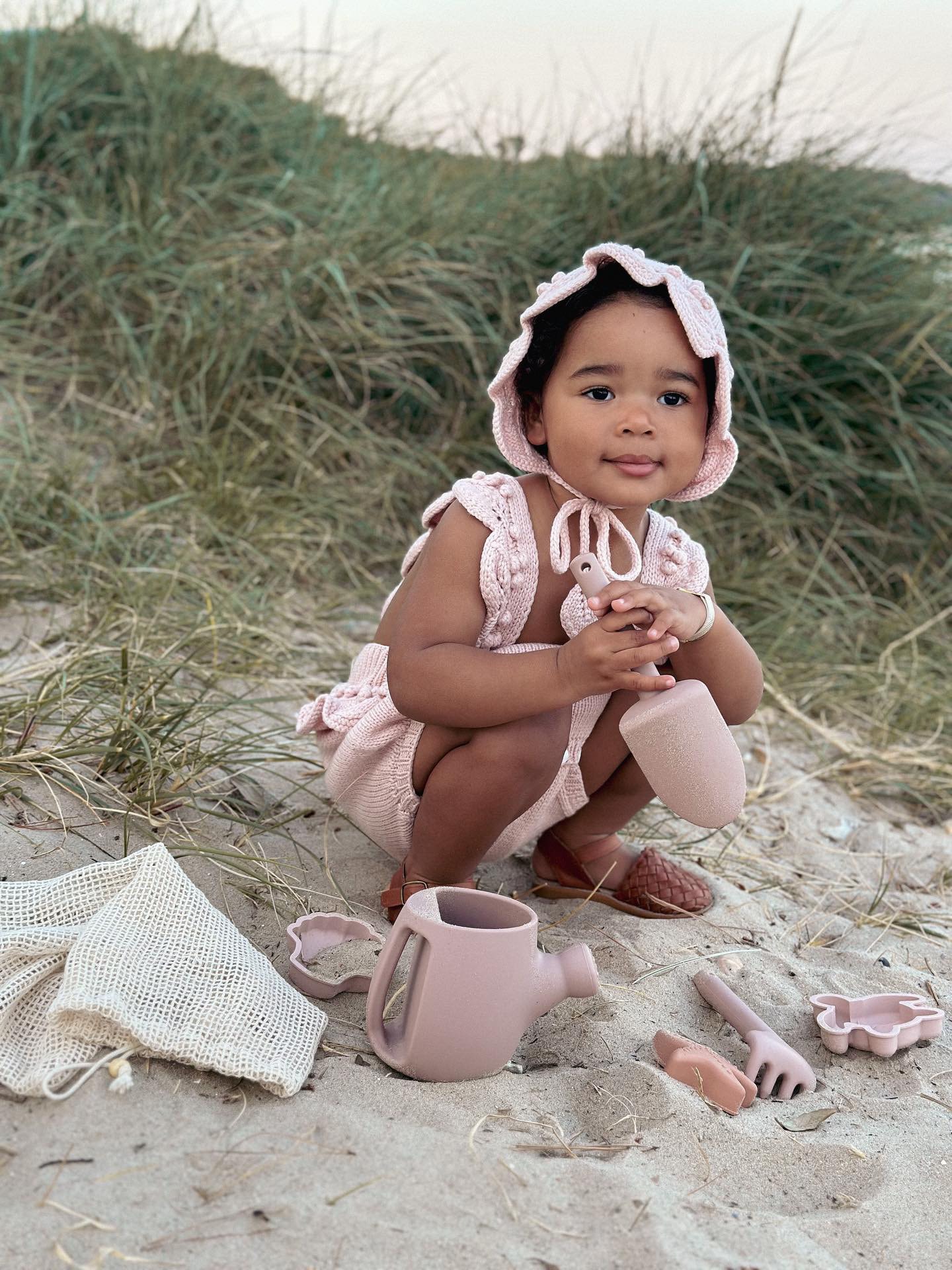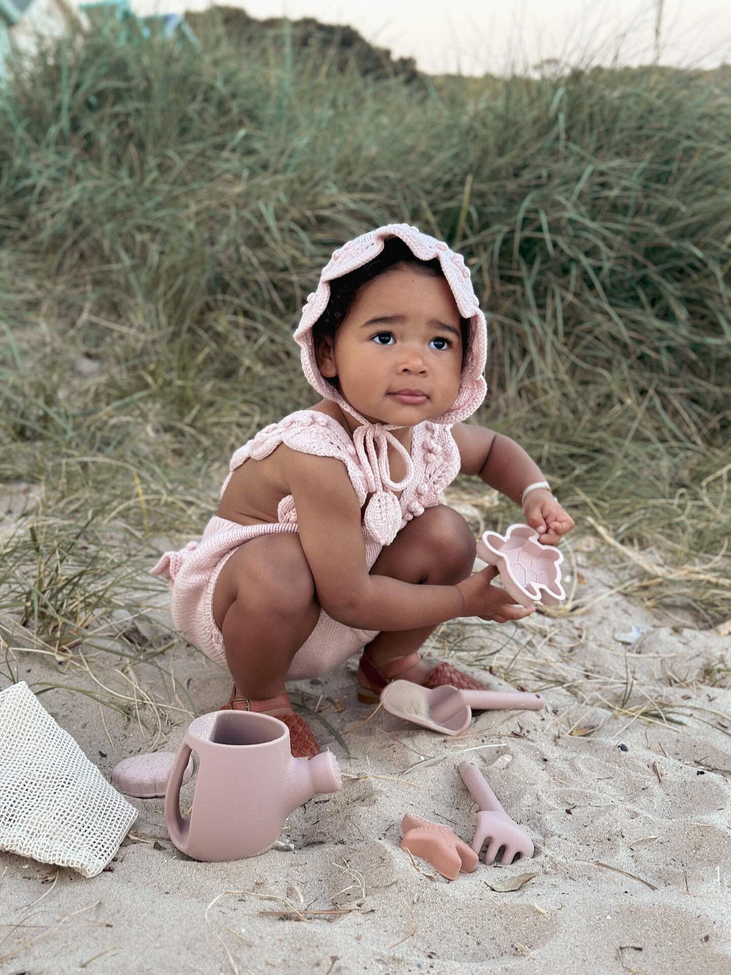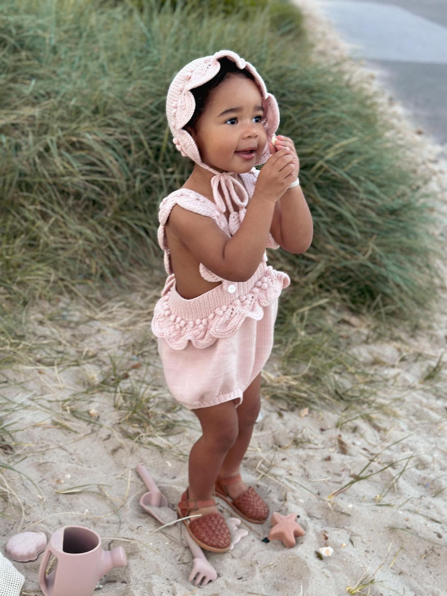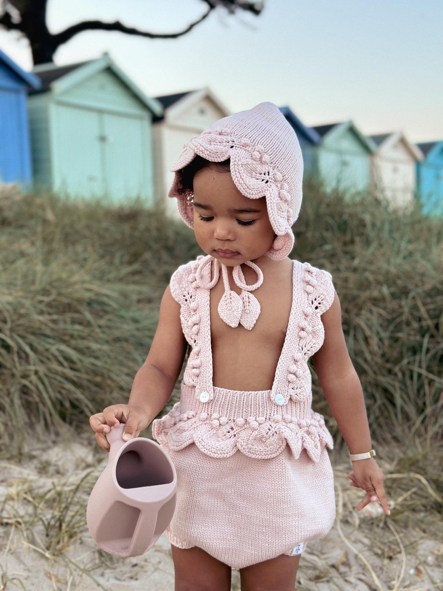 Knit Baby Romper and Bunny Bonnet Set – Pale Pink Merino Mohair
