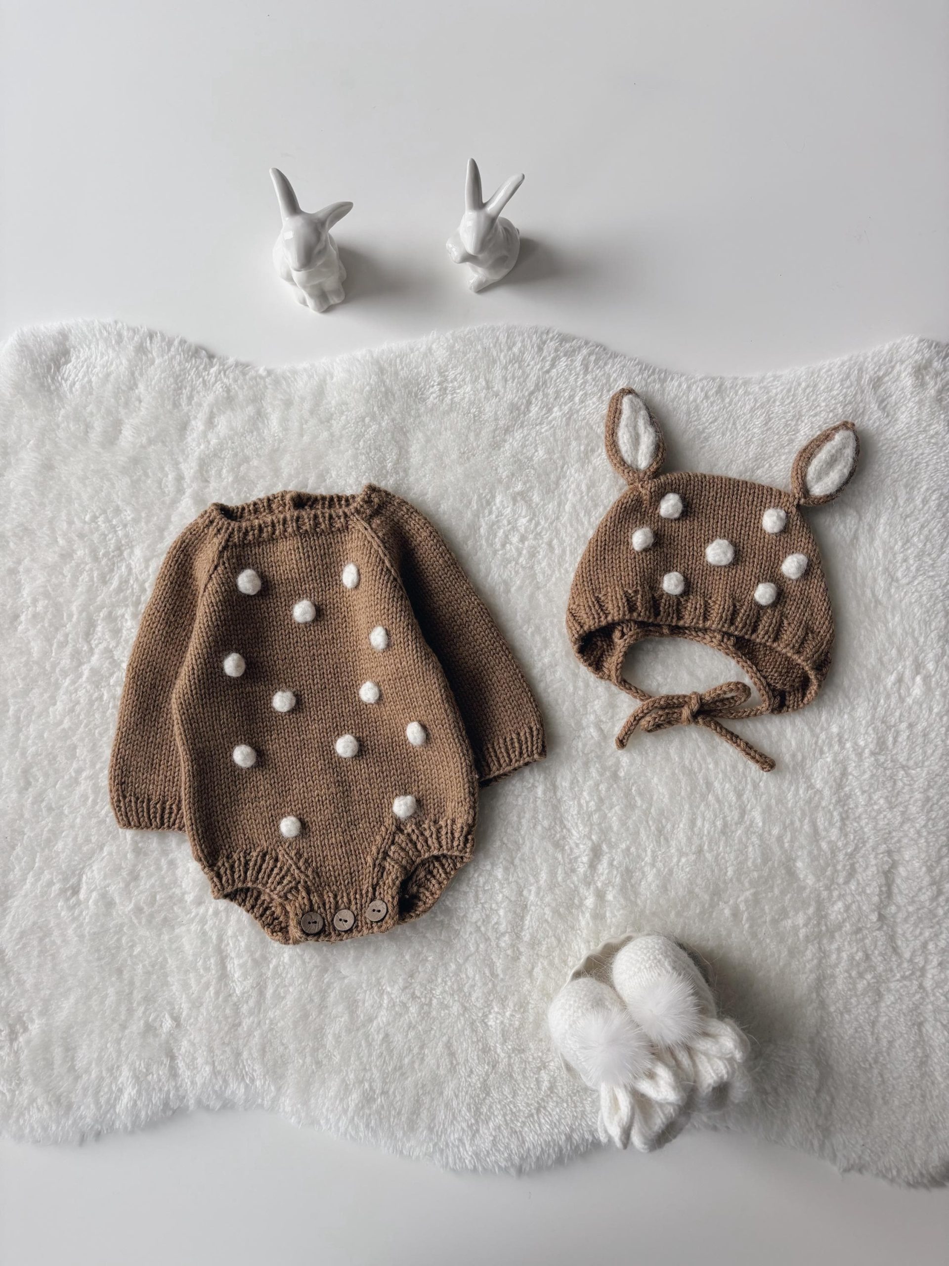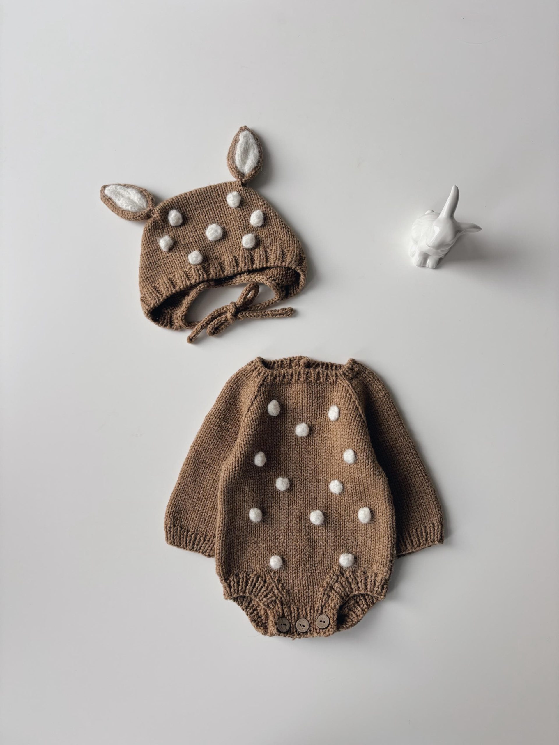 Merino Wool Deer Romper and Bonnet Set – Baby Christmas Outfit