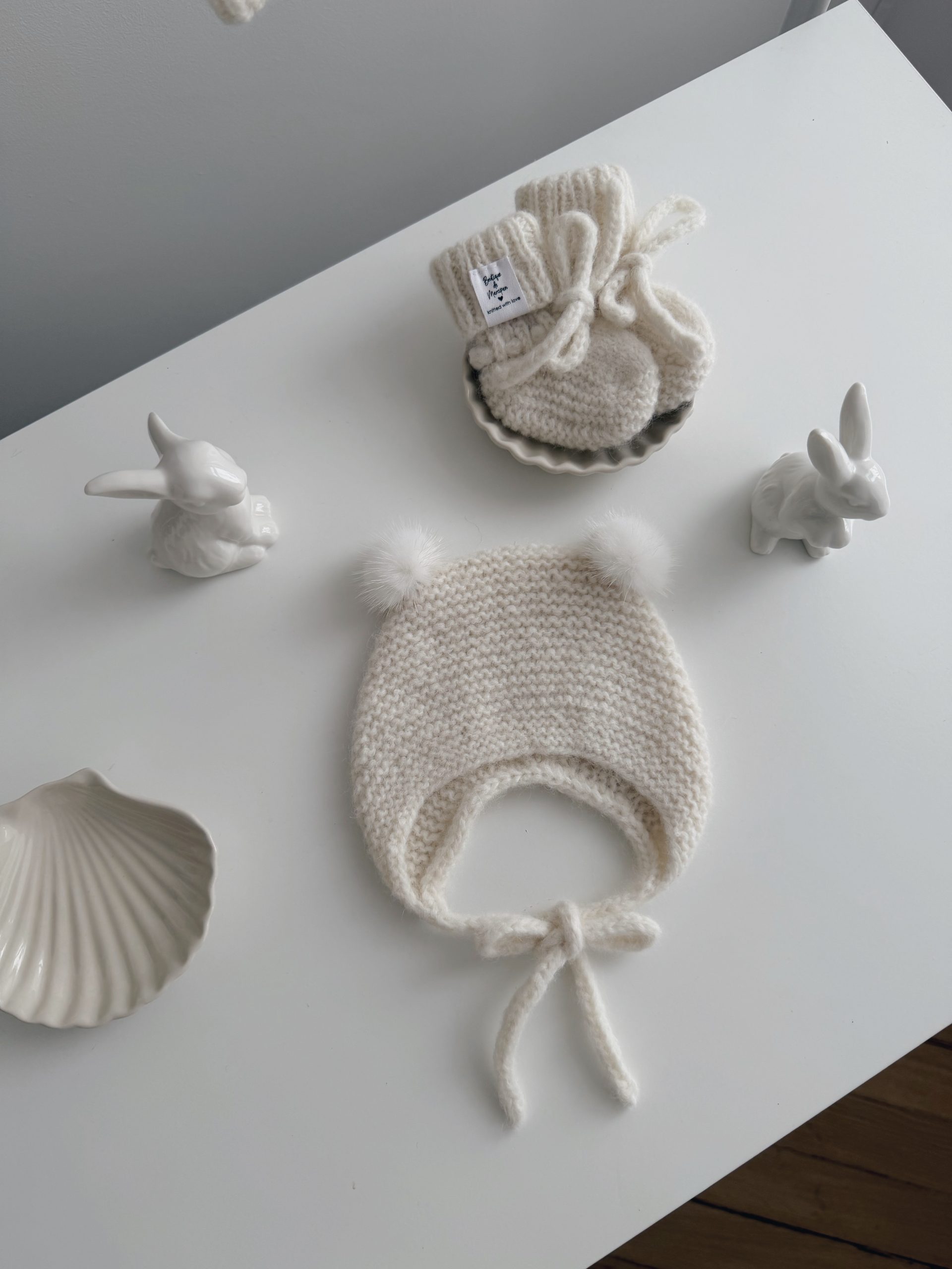 Knit Baby Alpaca Romper and Bonnet Set – Cream Photo Prop