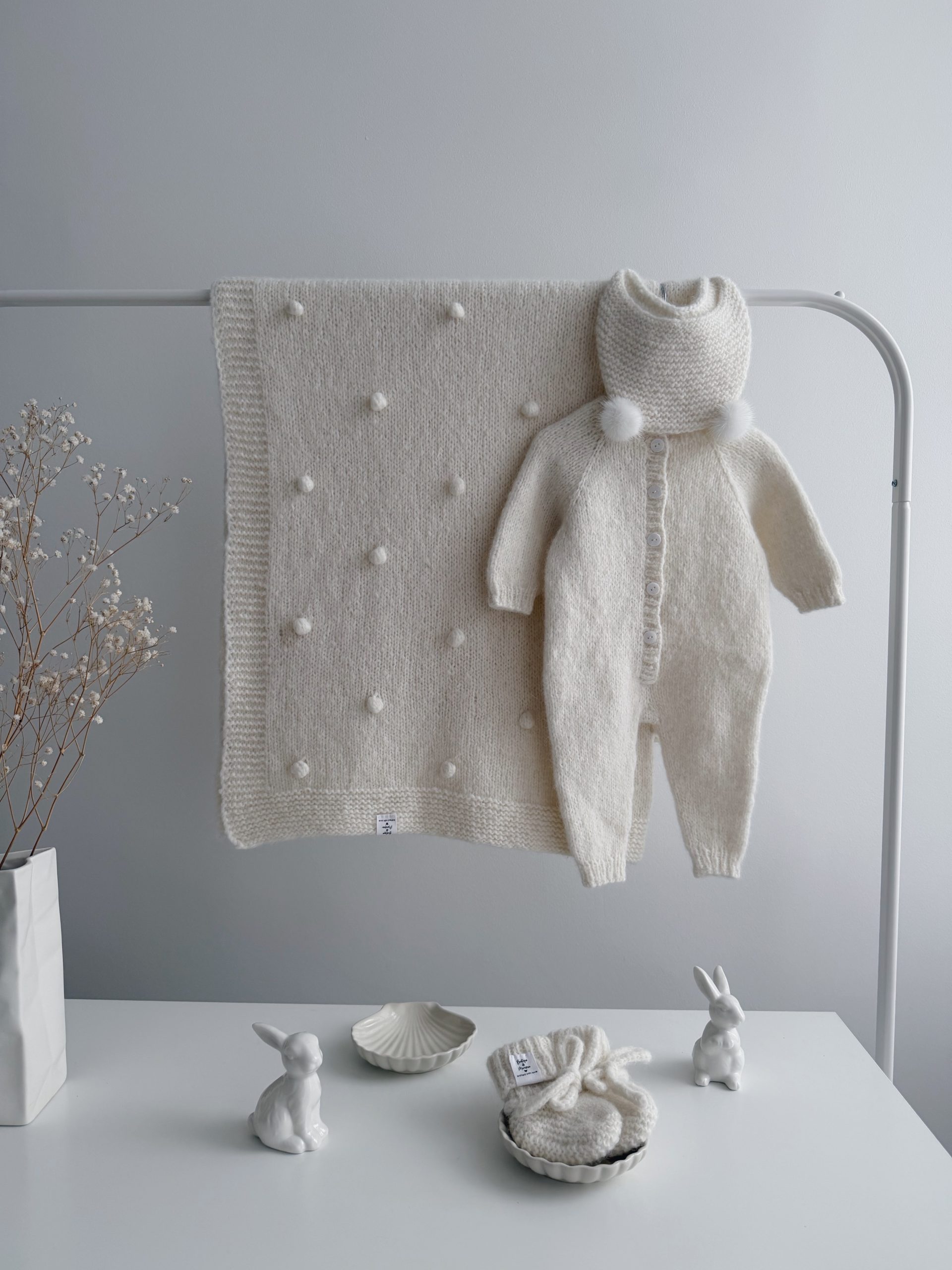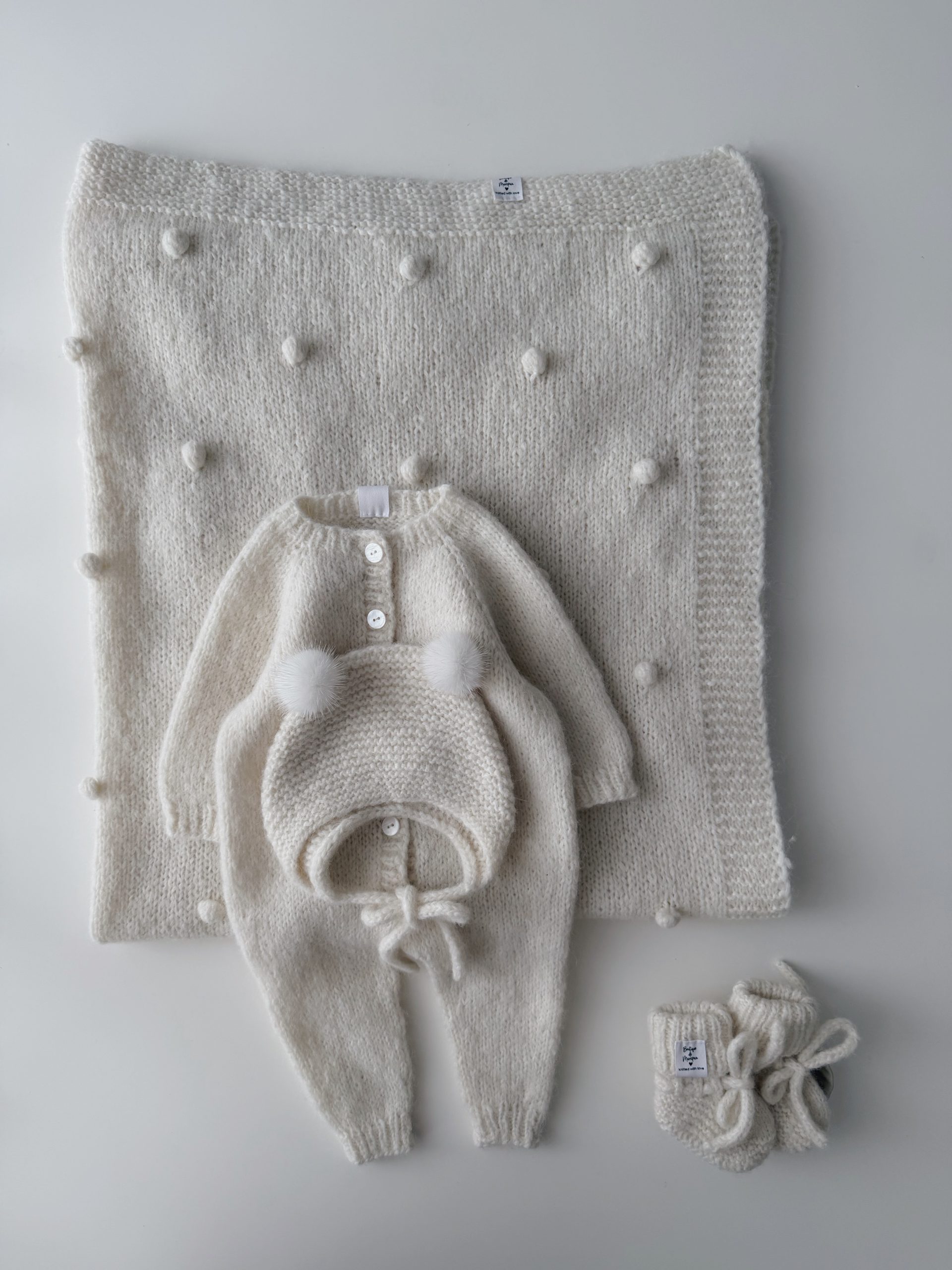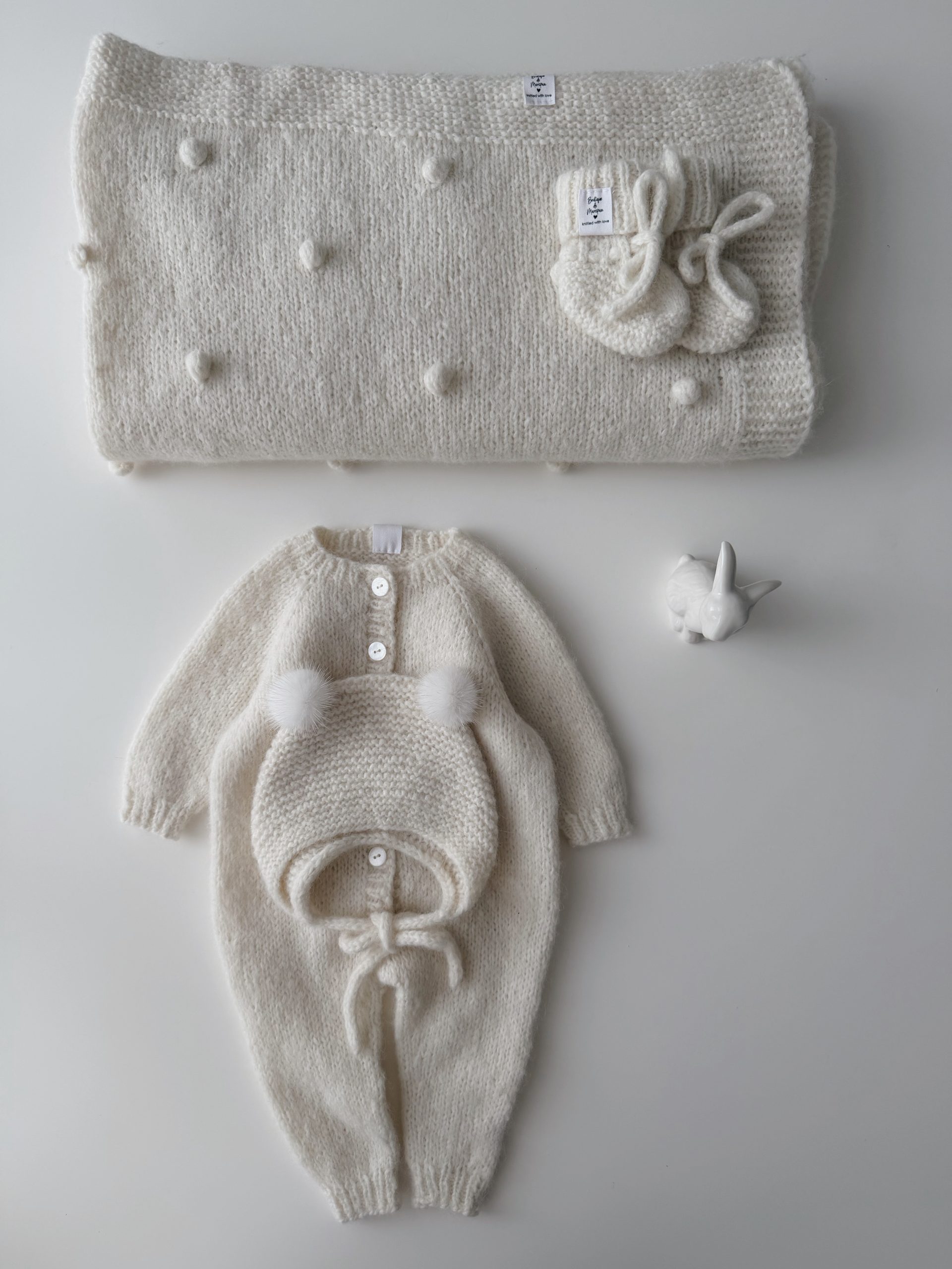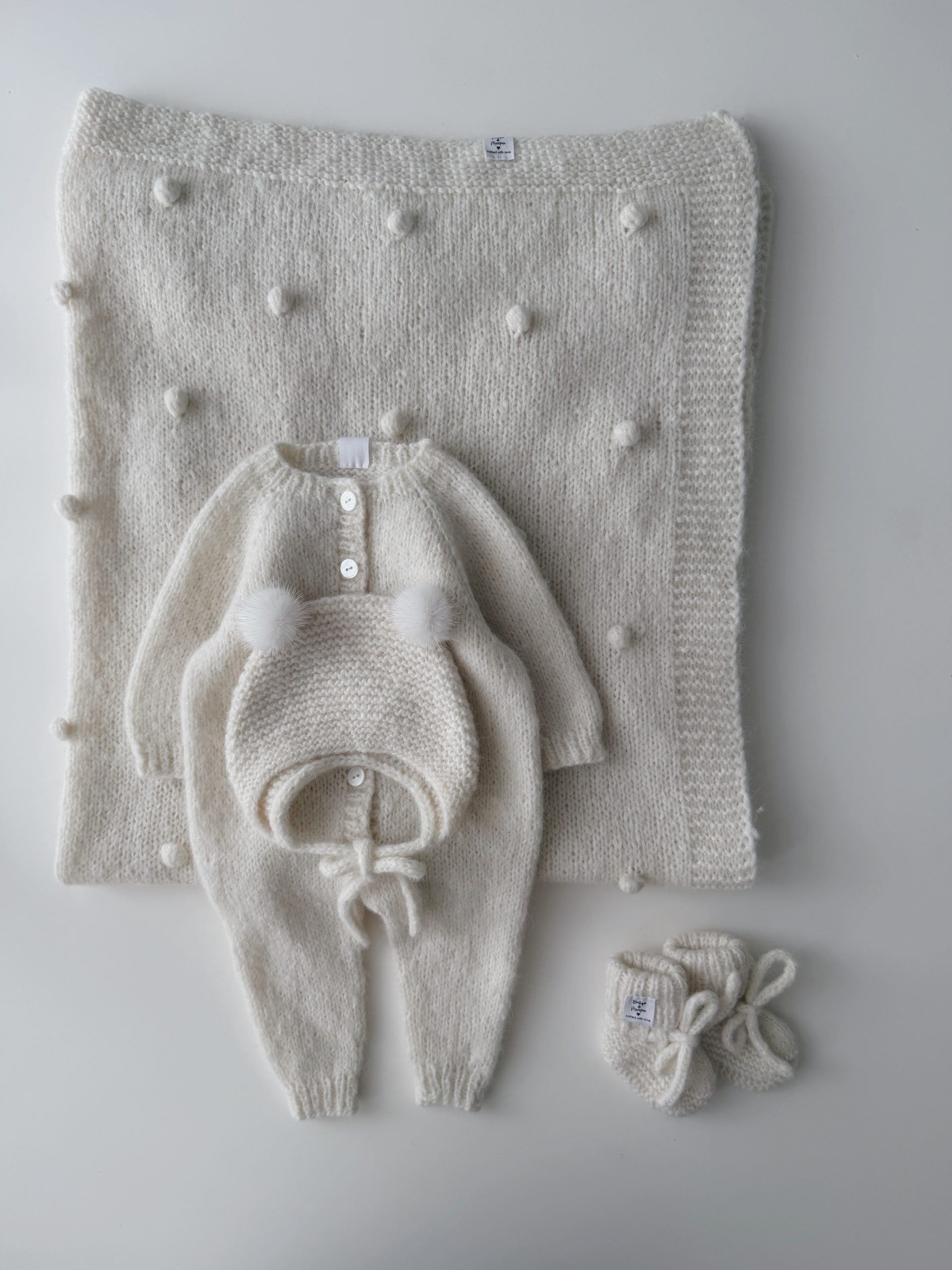 NEWBORN size Hospital Baby Set – Alpaca Blanket Long Legs Romper Booties and Bonnet