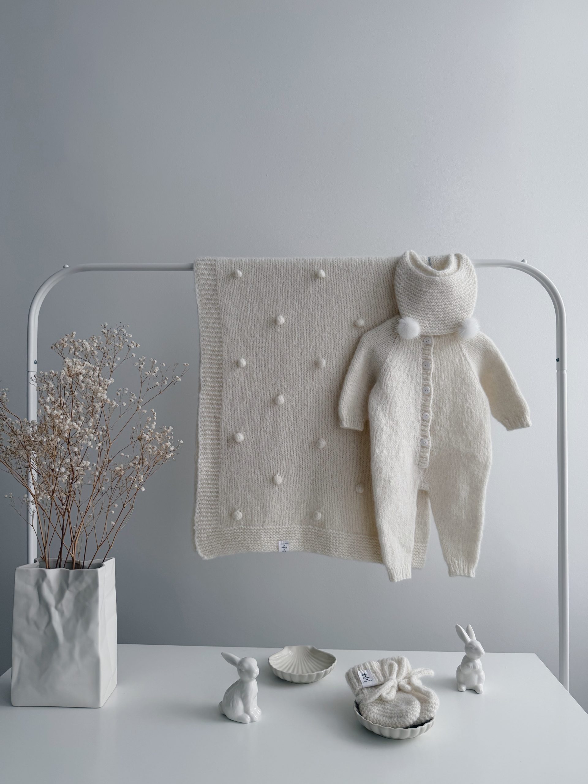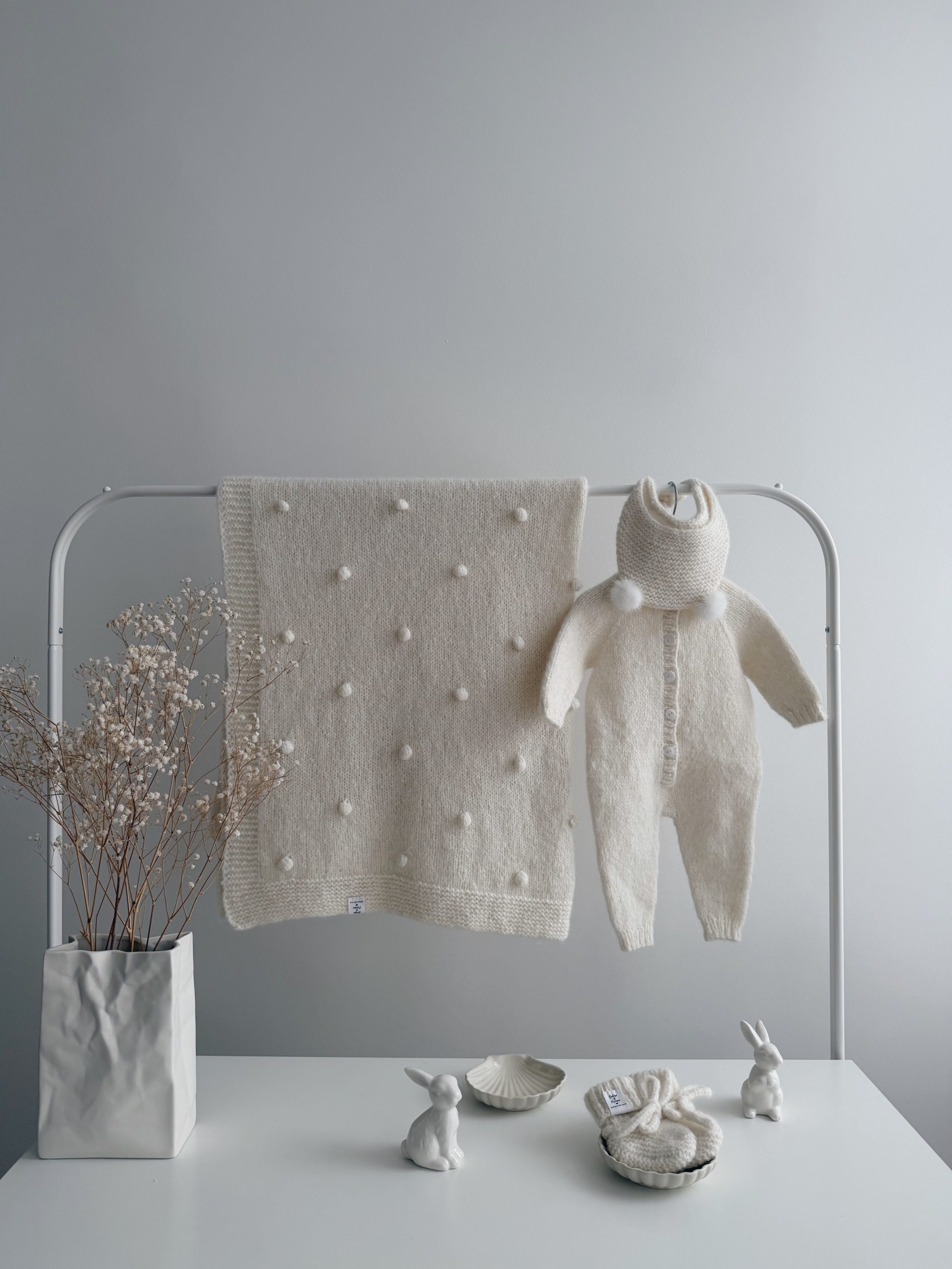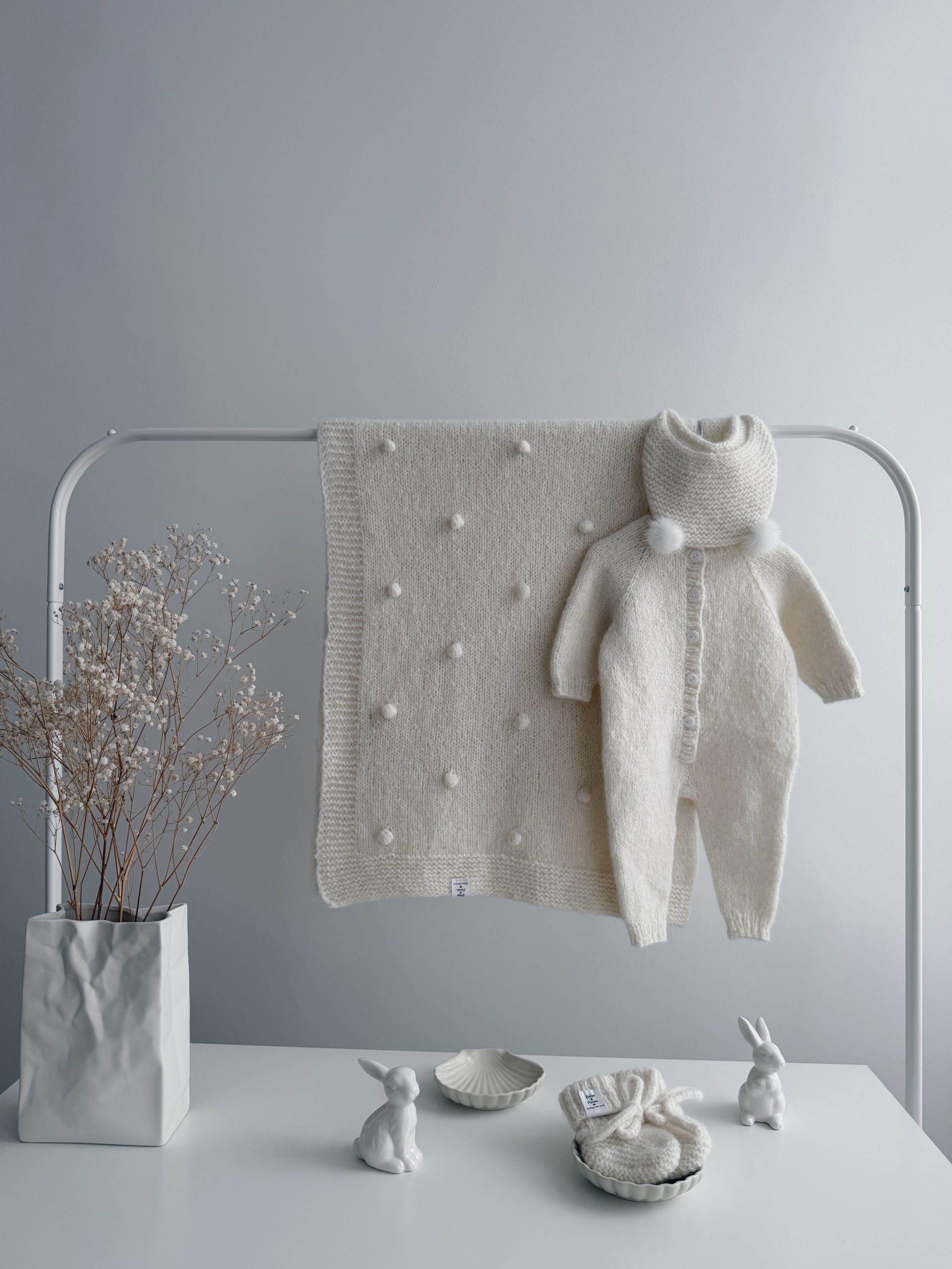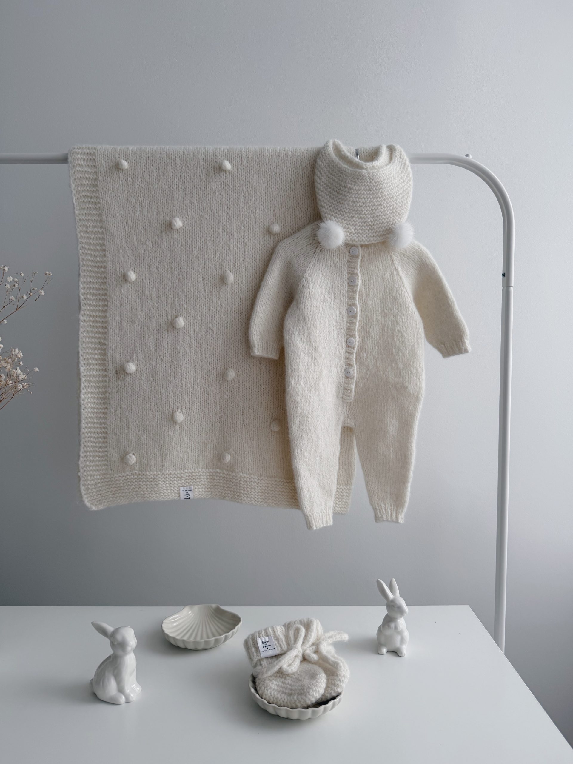 NEWBORN size Hospital Baby Set – Alpaca Blanket Long Legs Romper Booties and Bonnet