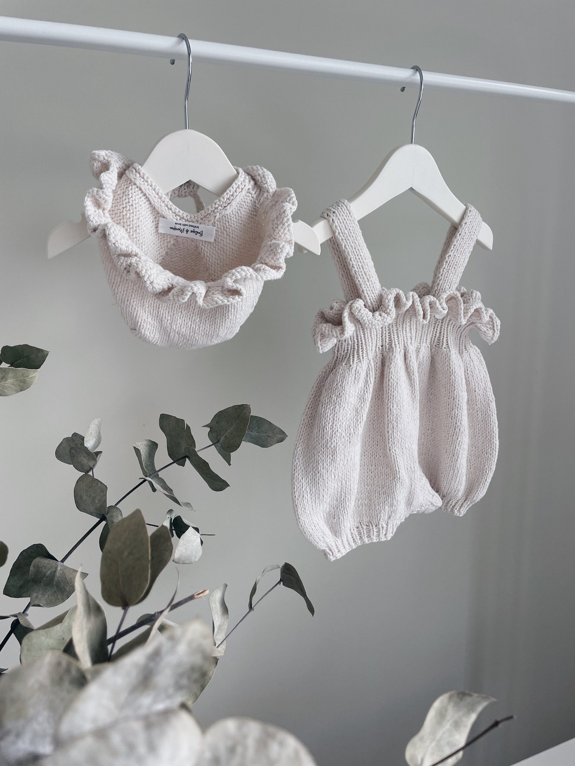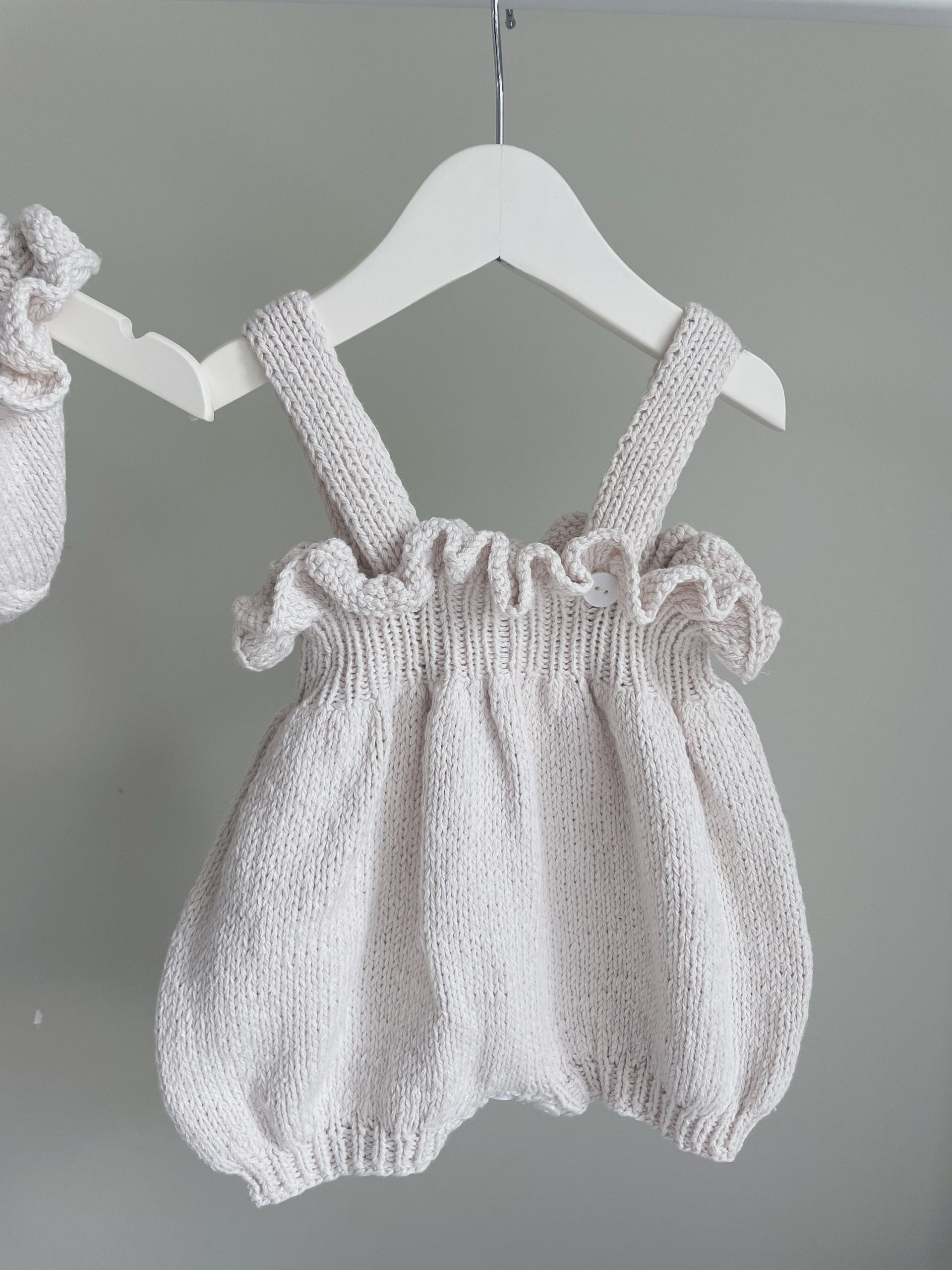Knit Merino Wool Baby Romper Set – Cream Sleeveless Outfit