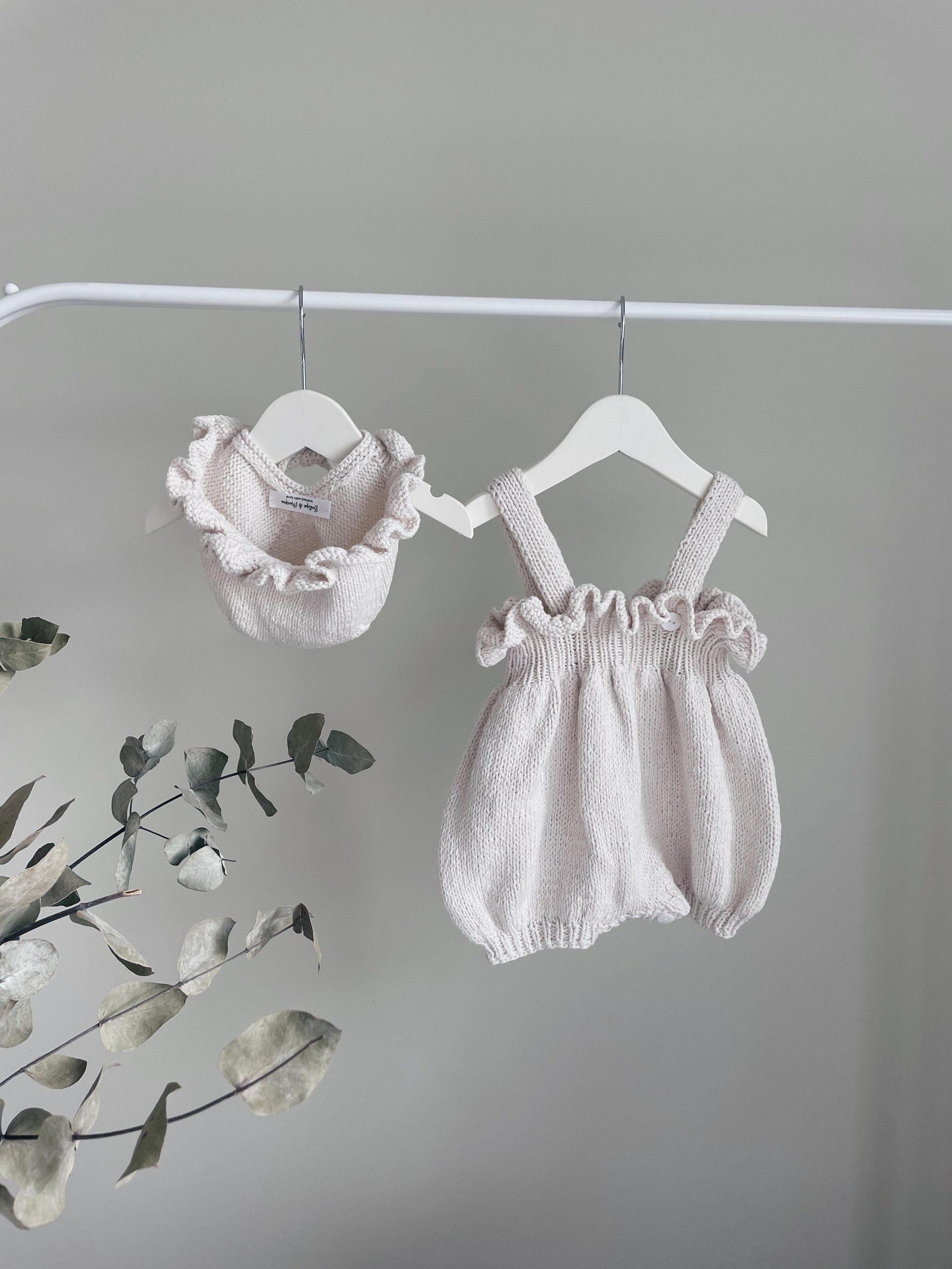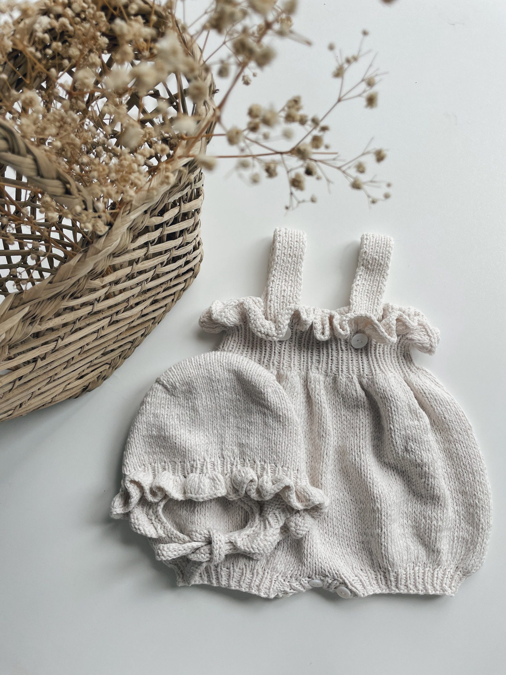 Hand Knit Merino Baby Romper and Bonnet Set – Photo Prop