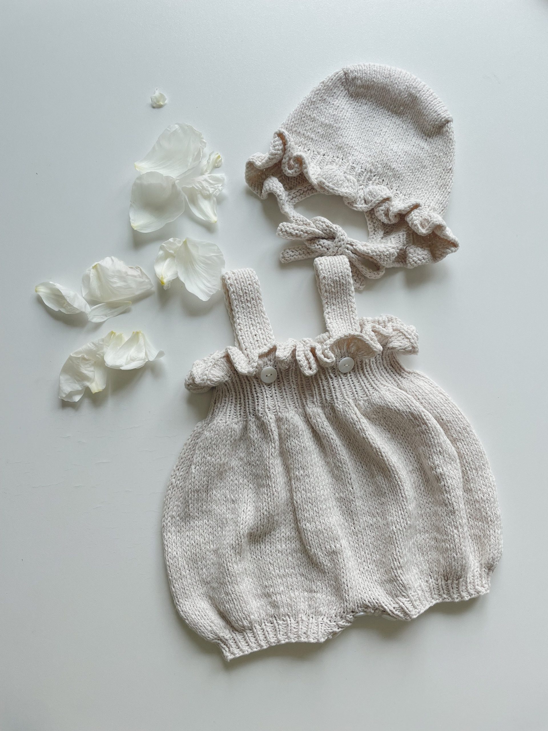 Knit Baby Alpaca Romper and Bonnet Set – Cream Photo Prop