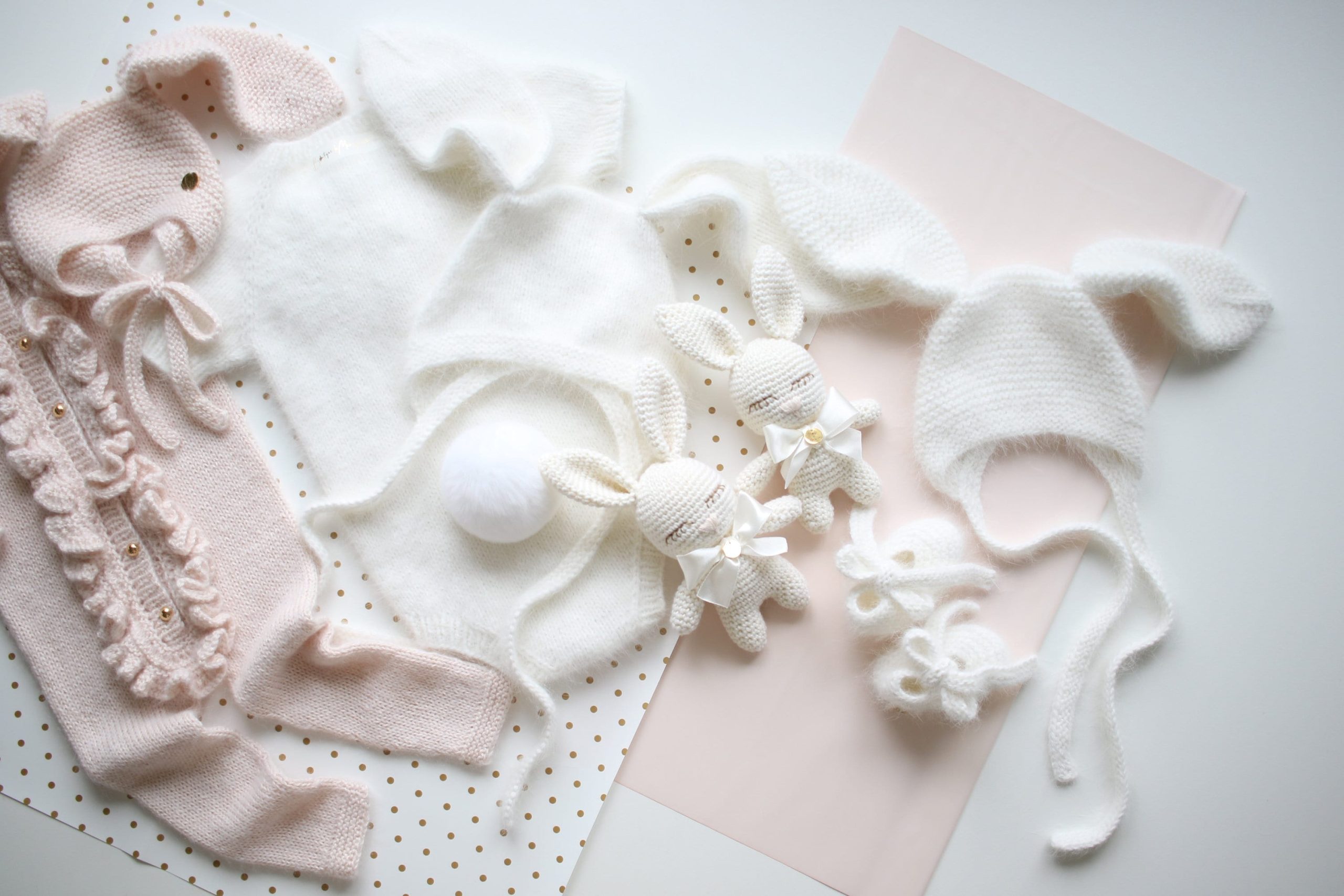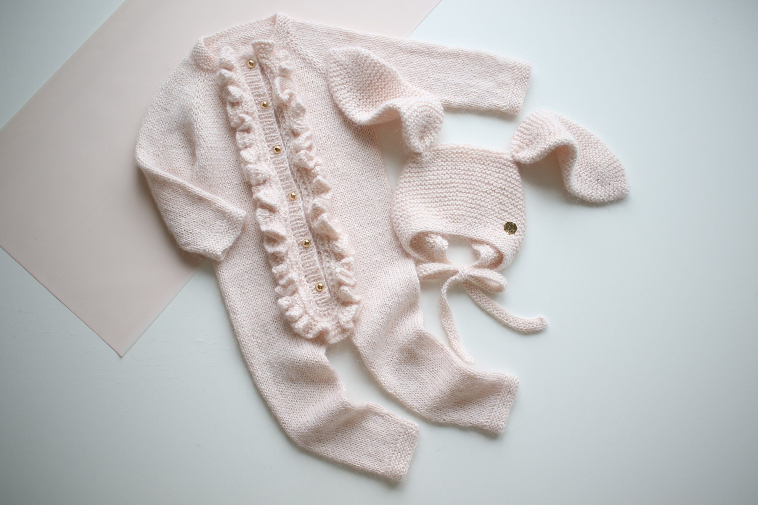 Pale Pink Baby Romper and Bunny Bonnet Set – Merino Mohair Blend